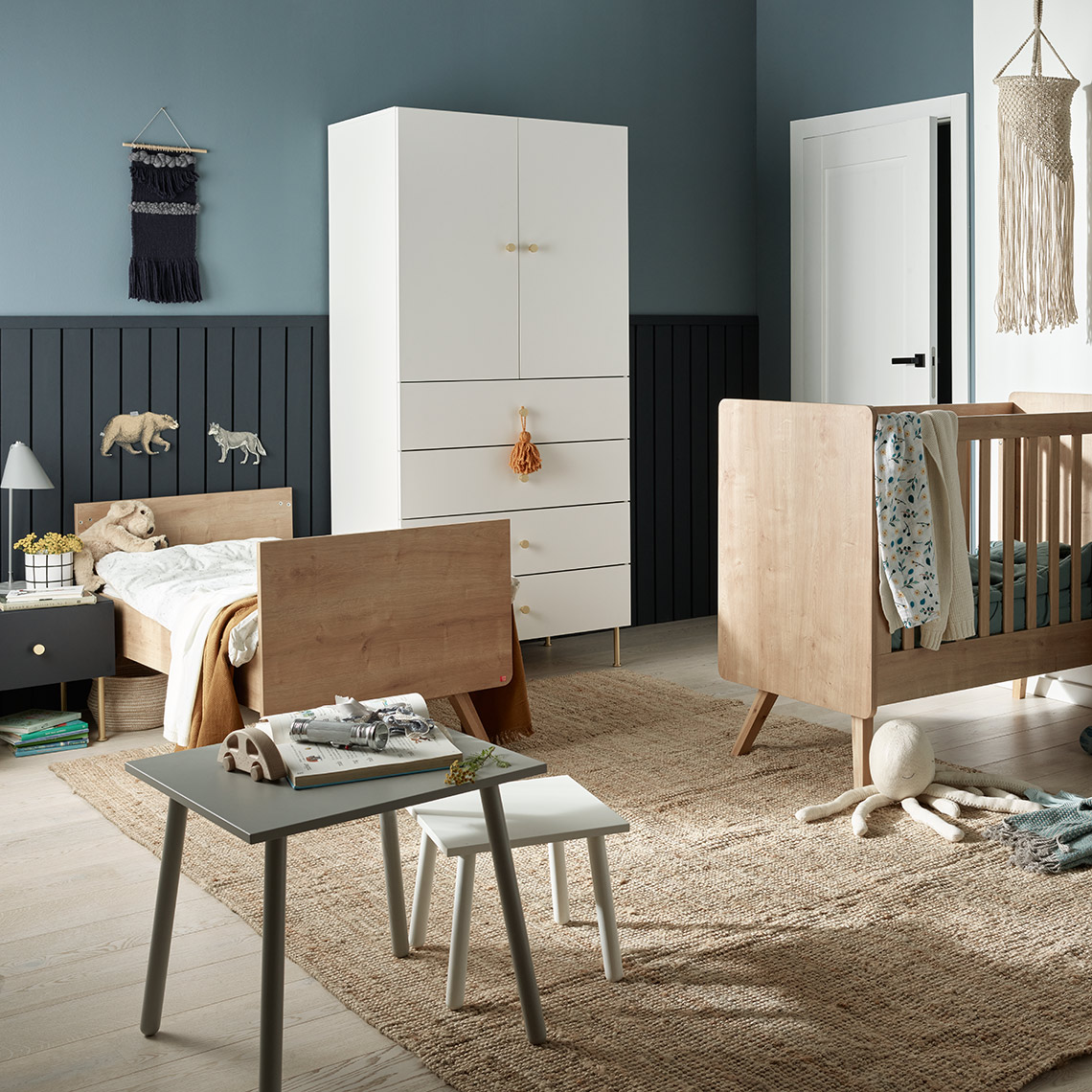 The Match children's table is available in 3 colors to choose from: white, oak and gray.