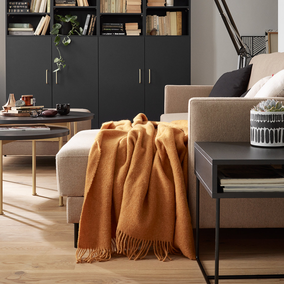 - The model is equipped with slim black legs, 11 cm high. Thanks to them, the corner sofa gains visual lightness and cleaning under it is easier.
