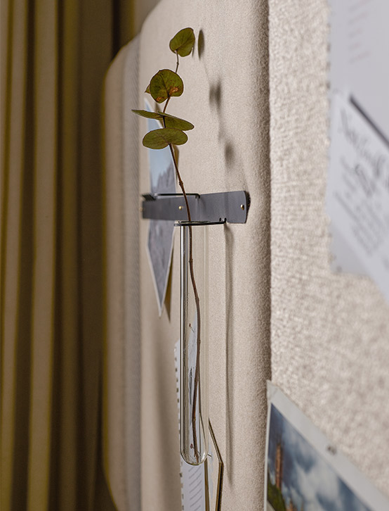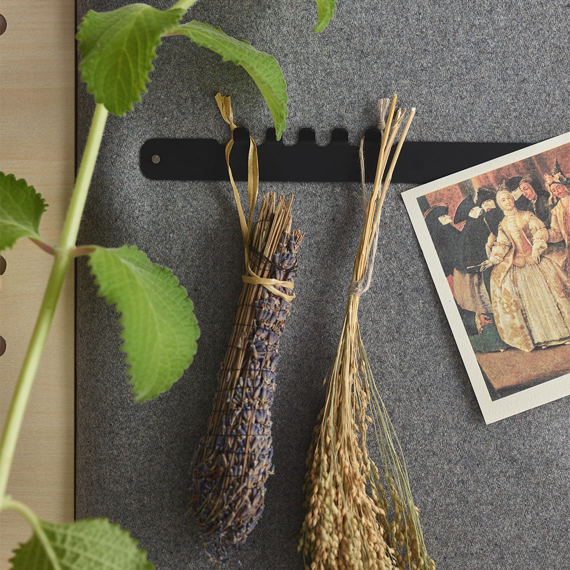 Trinkets, or small things of great importance. With a timeless decoration made of metal and glass they will always be at hand, hung on a hook or put in a clear vial. The black strip will harmoniously complement any interior story. You can attach it to Soform upholstered panels, a wall or a piece of furniture, and then enjoy its functionality. Designer Dorota Balewicz is behind this original product.
