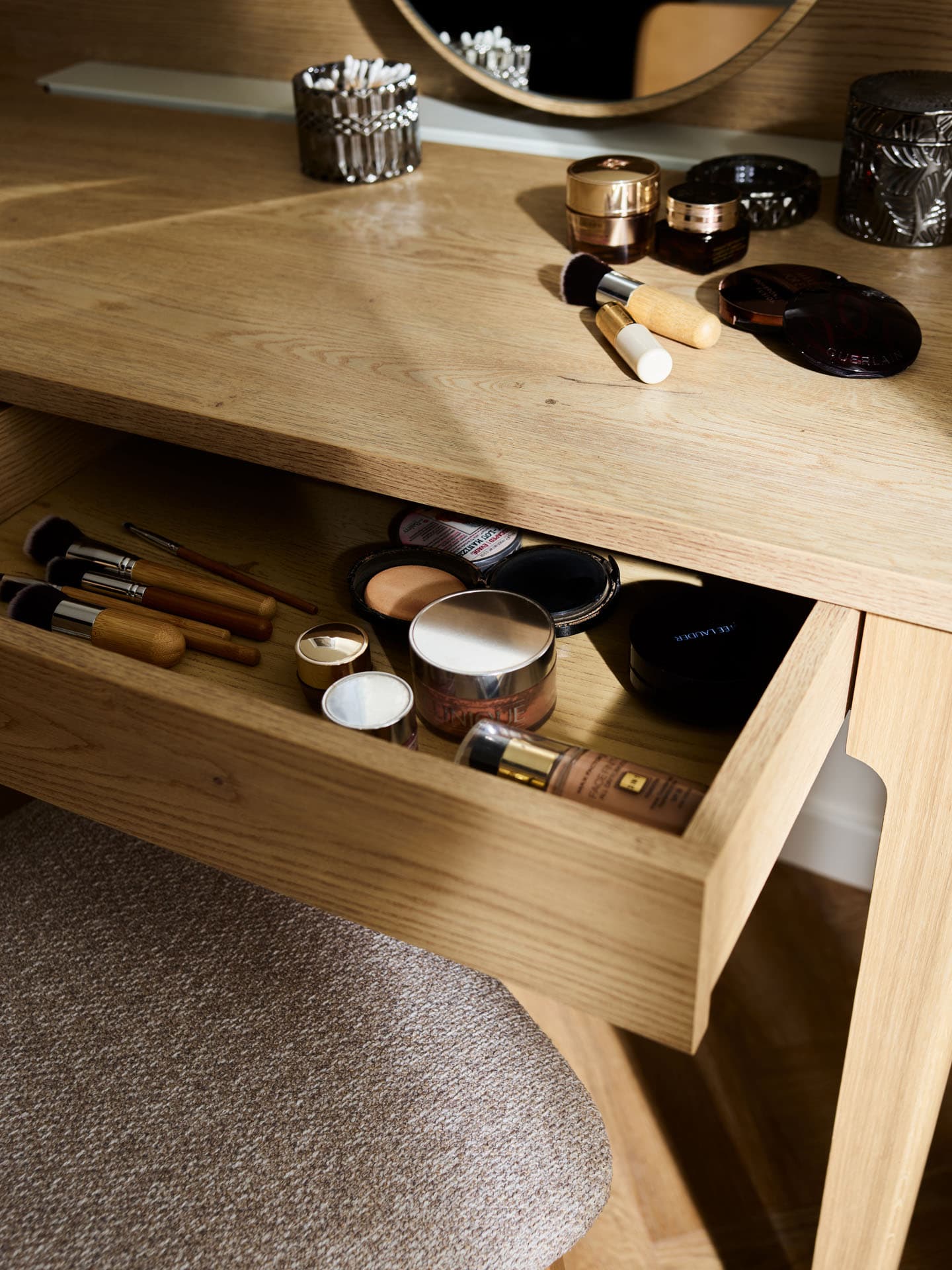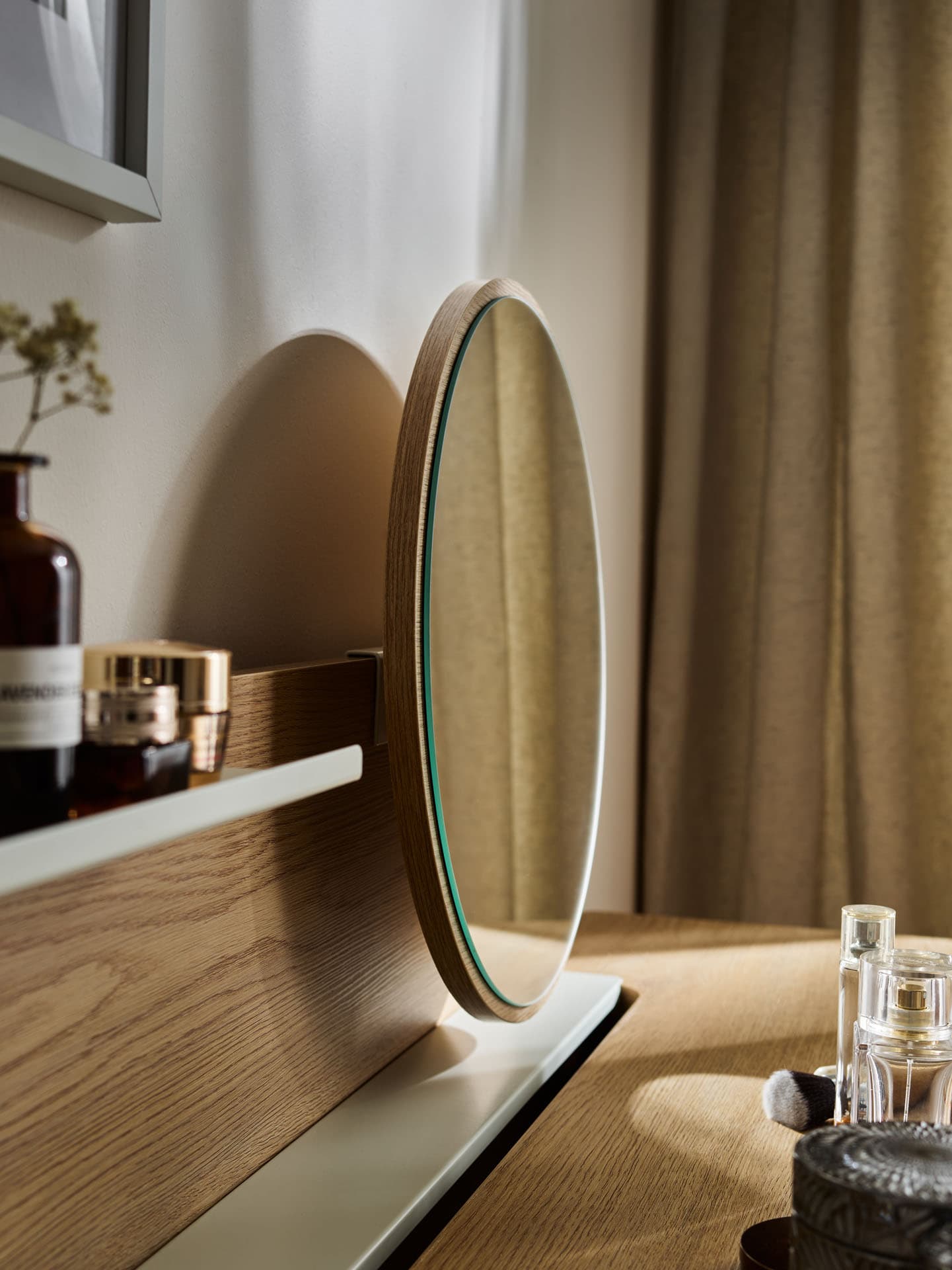 - The Well dressing table can form a cohesive set with other furniture from the collection, building a harmonious bedroom space.