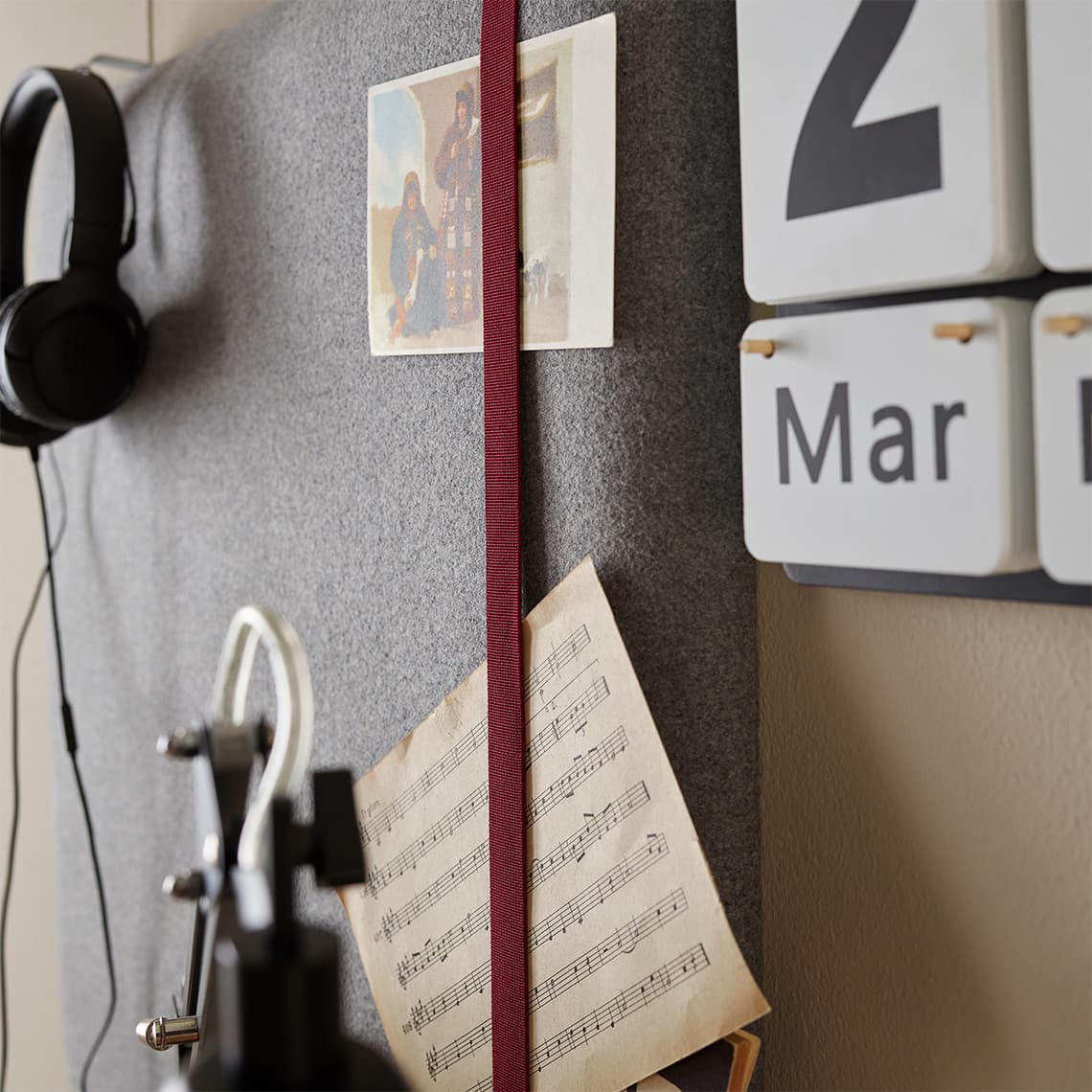 Functional clamp for Soform upholstered panels. Available in 3 colors, it allows you to attach trinkets. The rubber band is applied in the desired place before gluing the panel.