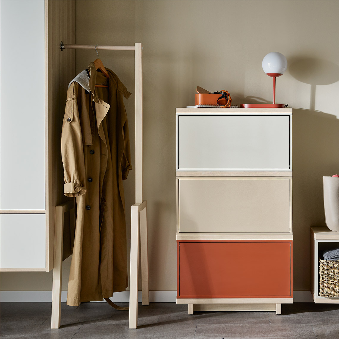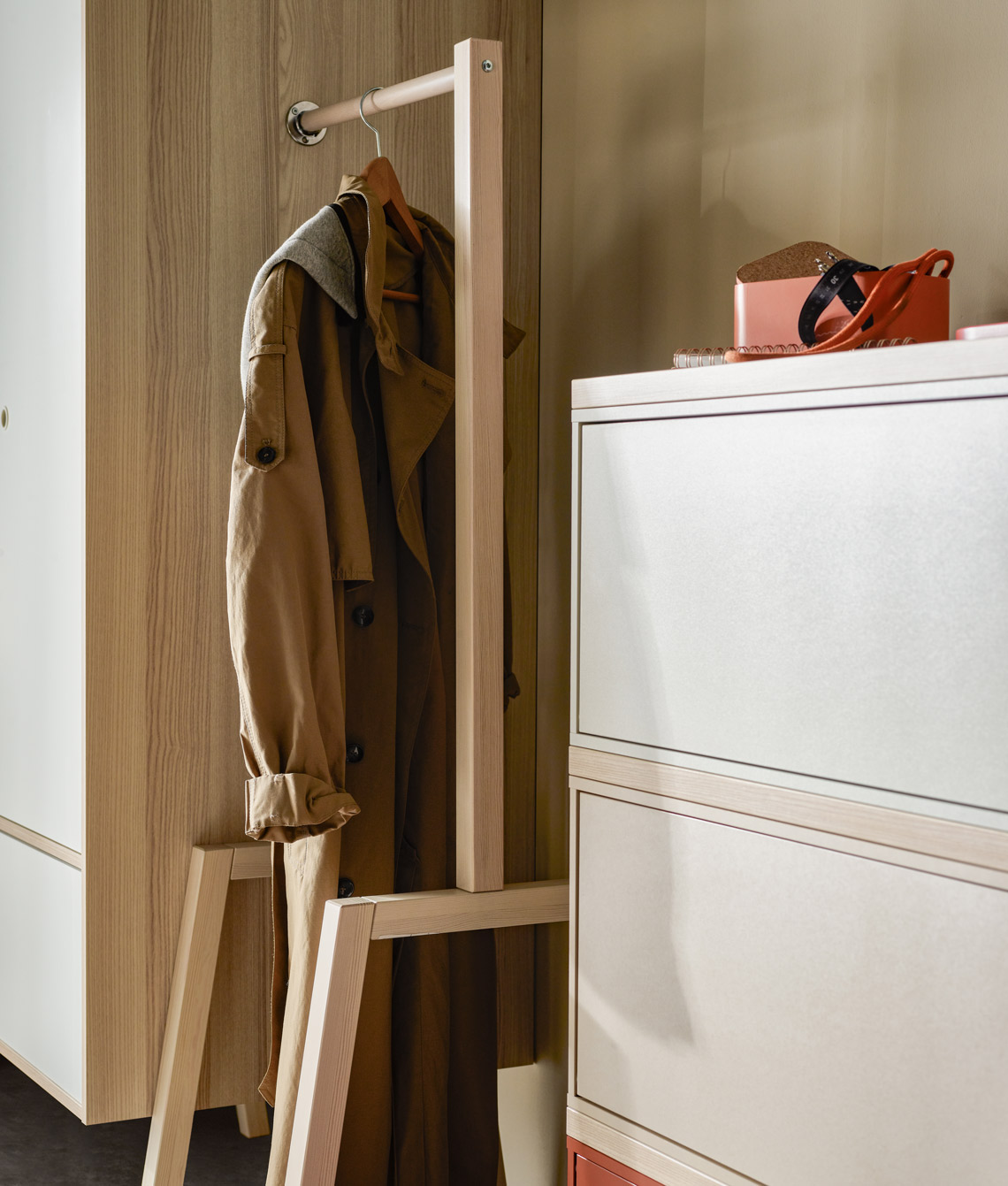 The Spot outdoor hanger can be screwed to the side of the closet, increasing storage space. The wooden accessory makes it easier to stay organized in a hallway, bedroom or children's room.