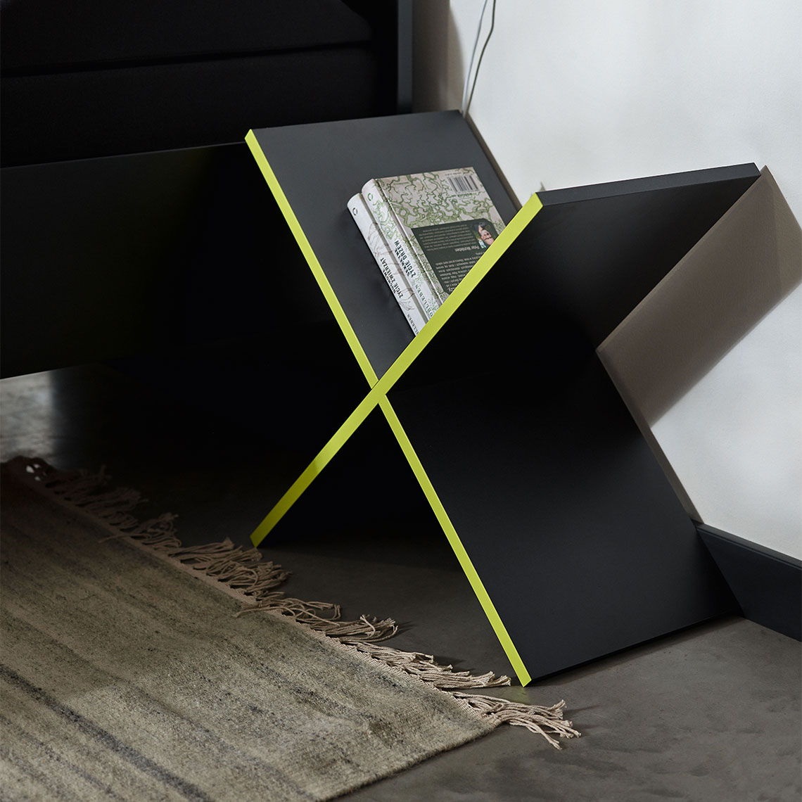 X-shaped filler divides the space inside a piece of furniture and allows aesthetic experimentation. By combining different shapes and colors of geometric fillers in furniture, you can create a functional space that is also an impressive visual installation.