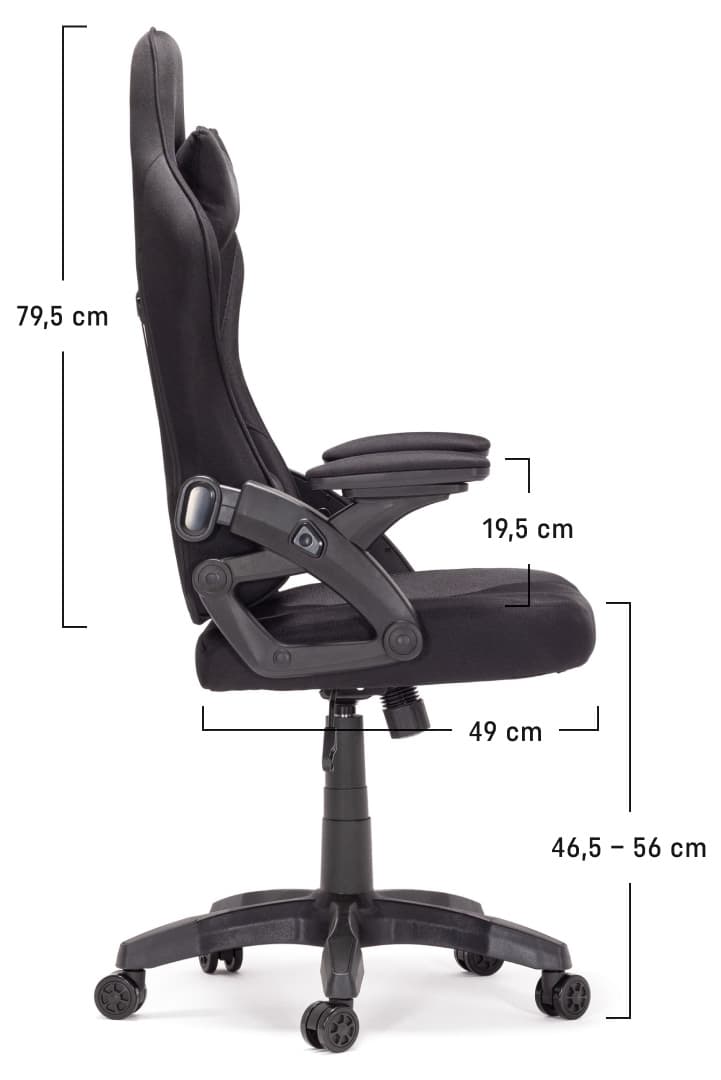 Flar is a gaming chair that combines sporty style with homely comfort. Its bucket-shaped backrest provides stable back support, and the full fabric upholstery is pleasant to the touch and airy - perfect for long sessions at your desk.