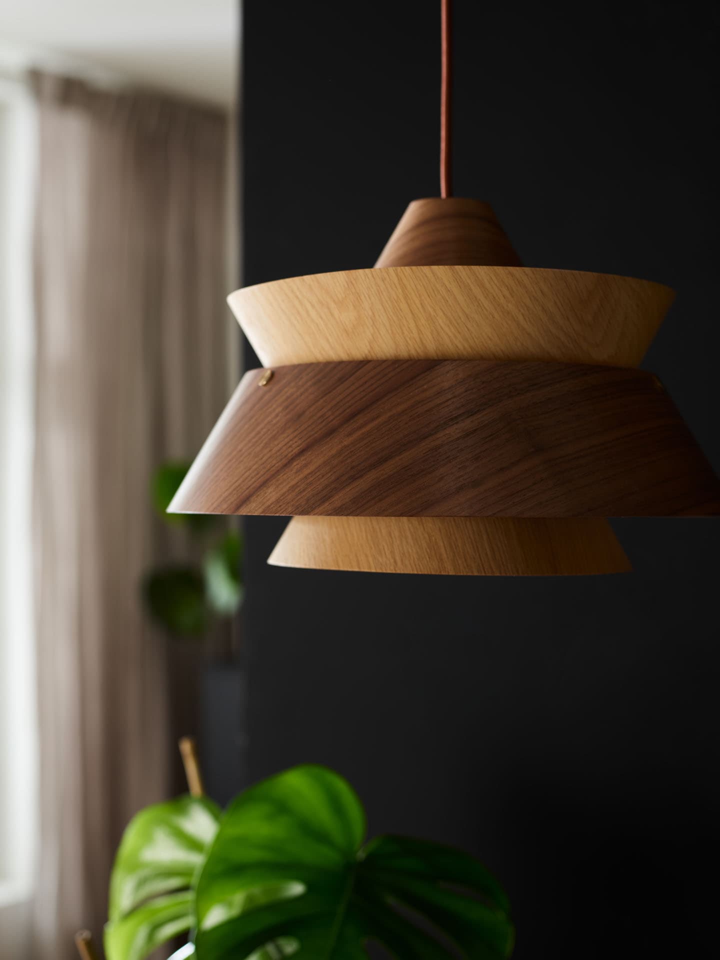 Minimalist elegance in a modern way. The Kyoto pendant lamp is a masterful combination of natural wood and metal, which will bring harmony and warmth to your interior. The layered lampshade with a conical shape creates a striking composition that beautifully diffuses light, creating a cozy atmosphere.