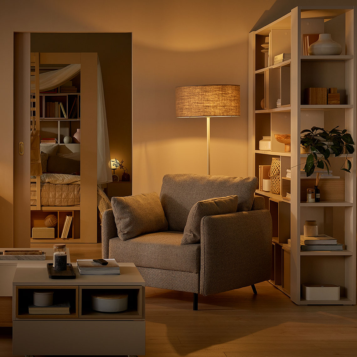 Strapo, Hitte and Hitta are a collection of pendant and floor lamps, characterized by classic forms and natural materials.