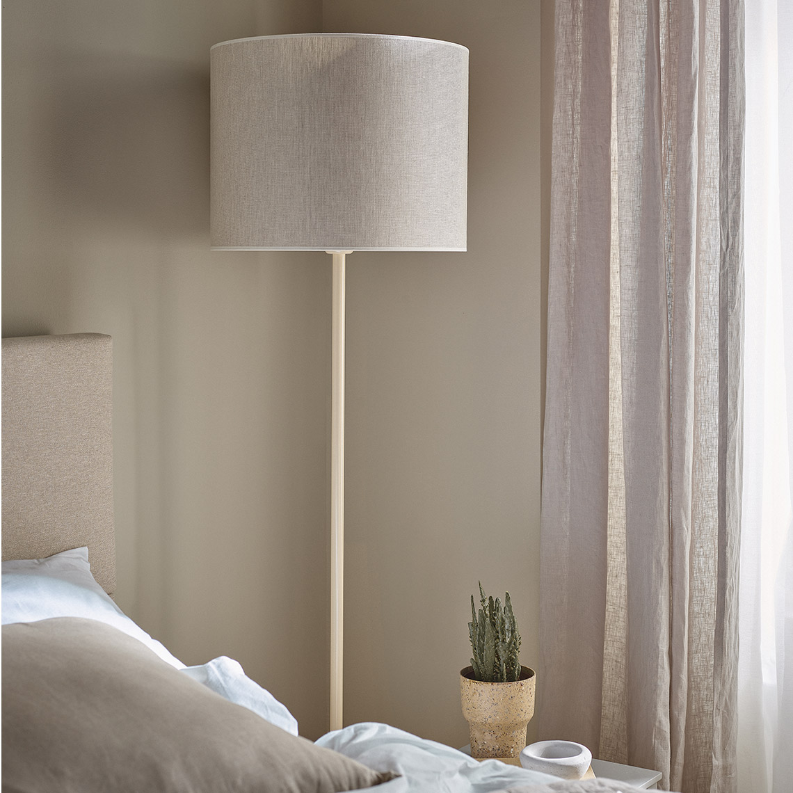 Hitta are linen lampshades in a light shade of beige.
