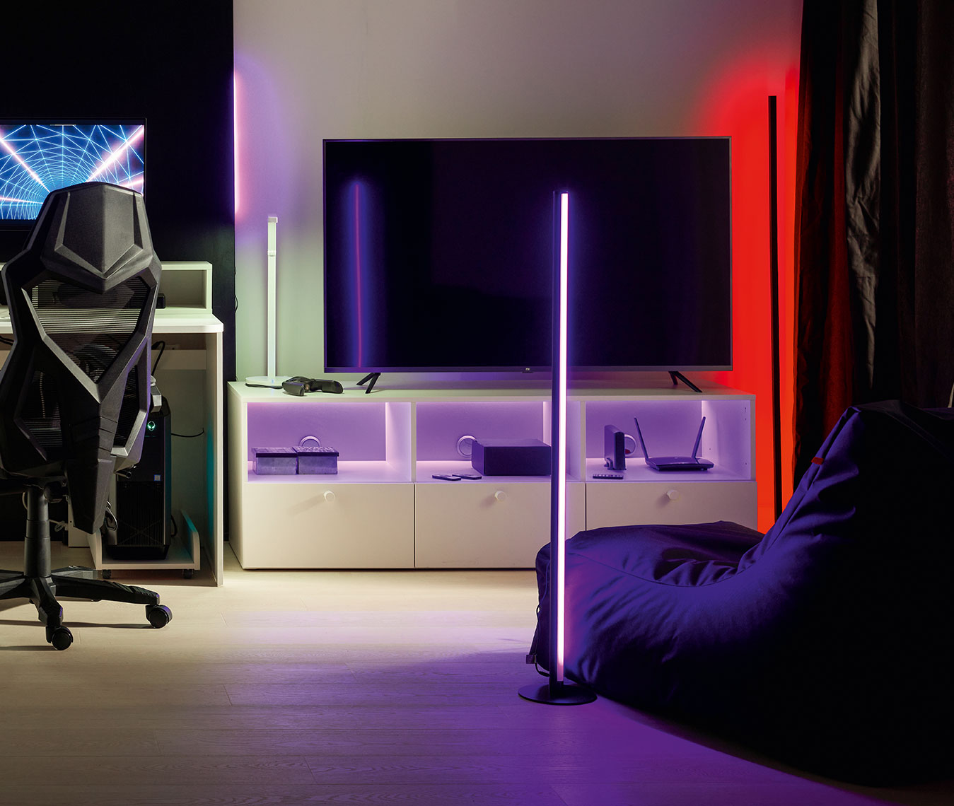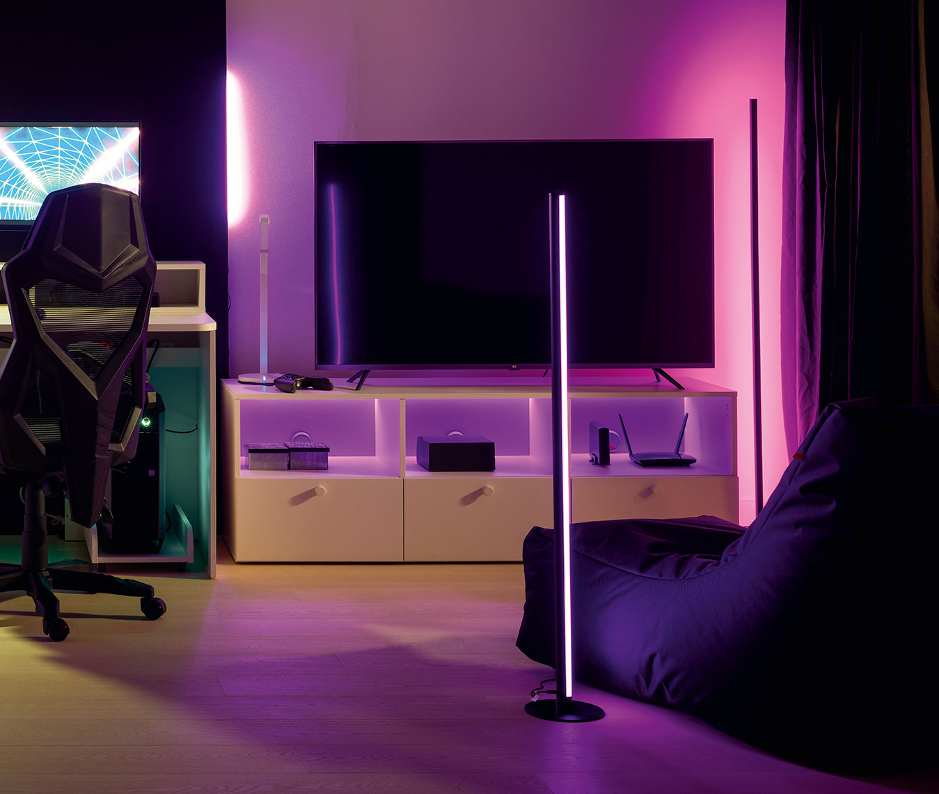 Discover a whole new experience with the Tendo floor lamp, which takes movie watching and gaming to a whole new level. This state-of-the-art lamp offers a number of innovative features that allow you to immerse yourself even more deeply in a fictional world.