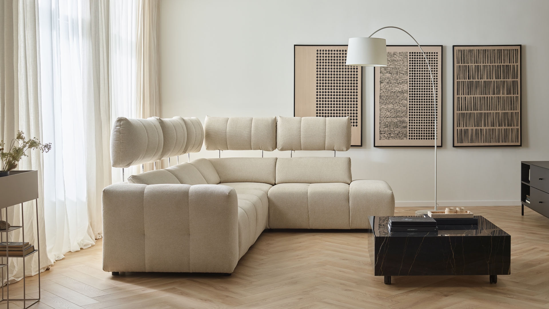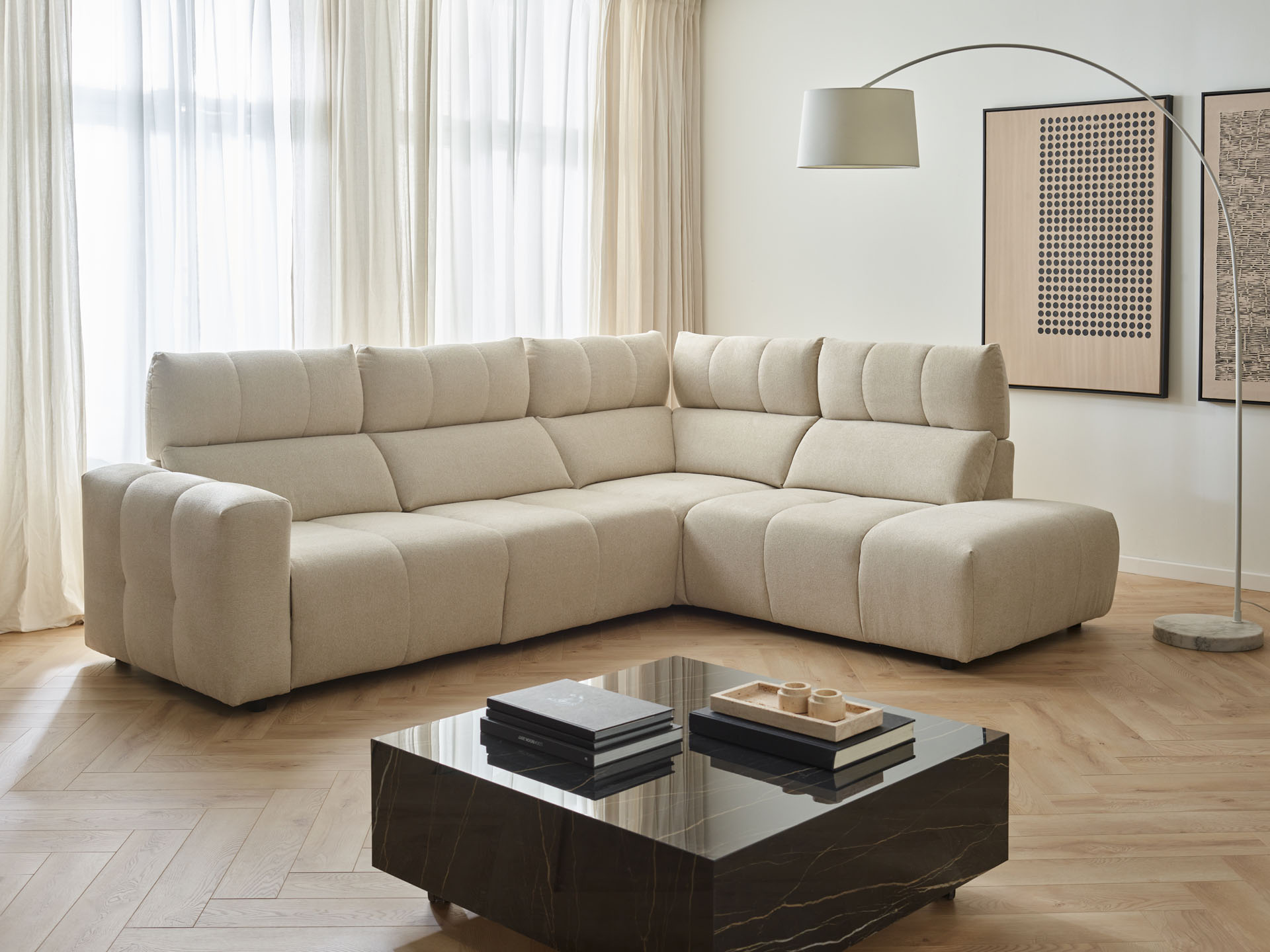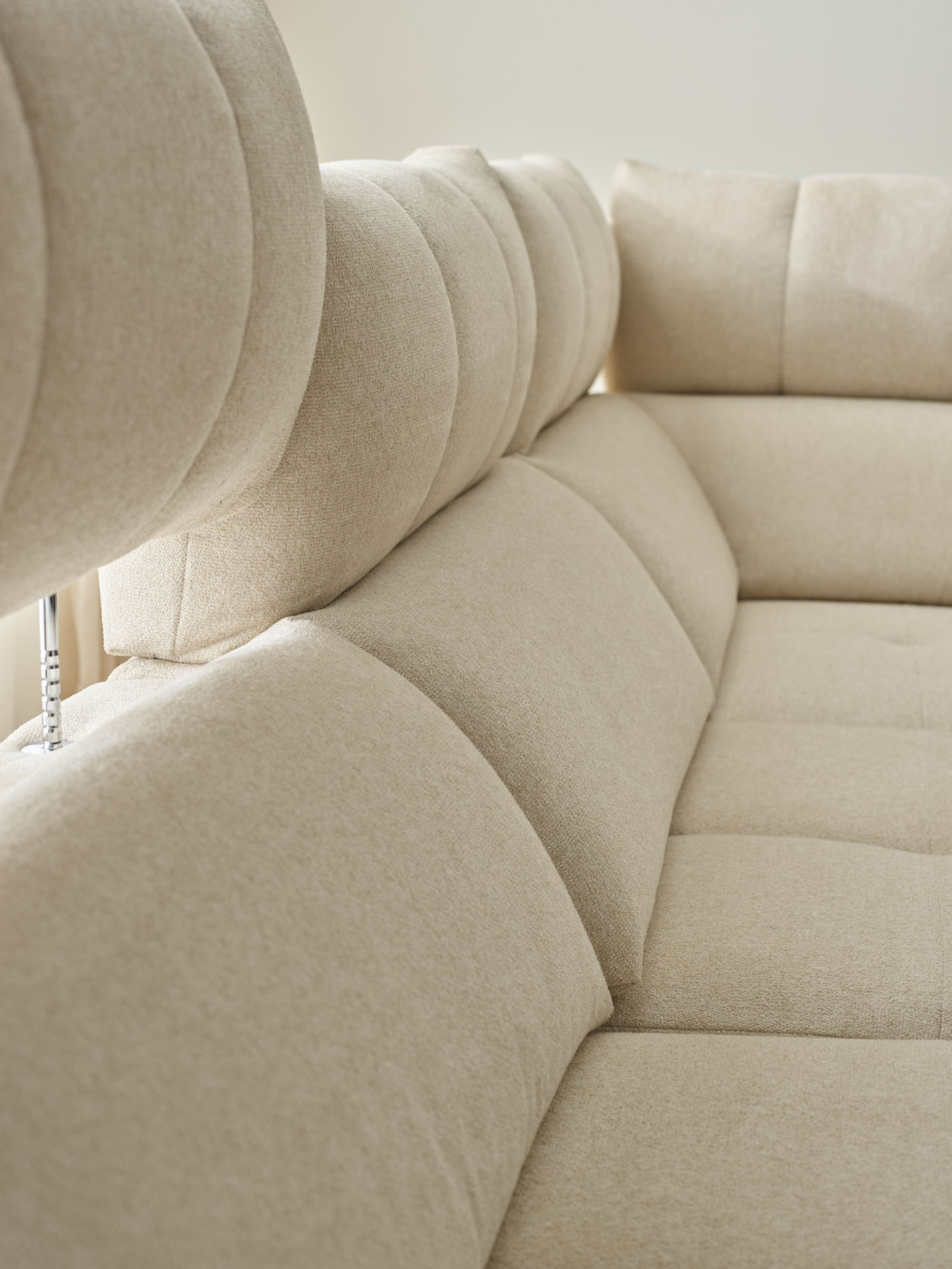 Velora corner sofa is an ideal place for daily relaxation and meetings with loved ones. Adjustable headrests and comfortable profiling of the backrests provide full support for the whole body. Thanks to the electrically extendable footrest, you can rest in the "zero gravity" position. Subtle stitching adds elegance to the furniture, and a wide selection of fabrics allows you to match it to the style of your interior.