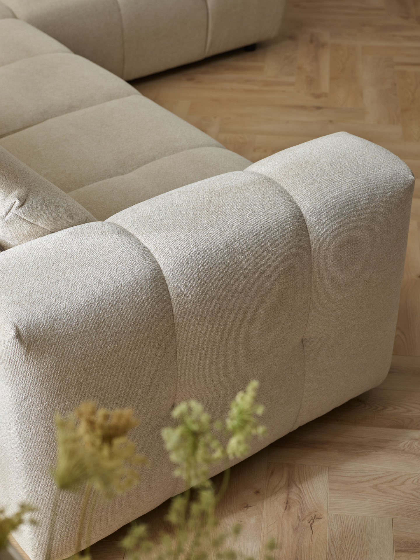 - Decorative stitching on the backrests and seats gives the Velora corner sofa a classic character.