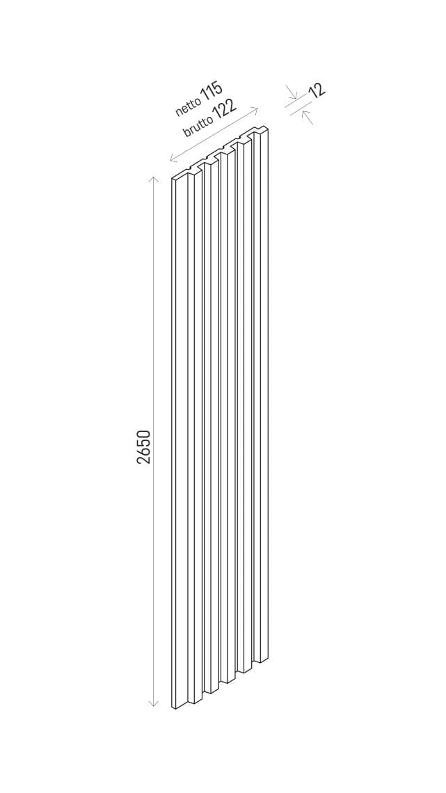 width: 12.2 cmheight: 265 cmDepth: 1.2 cm