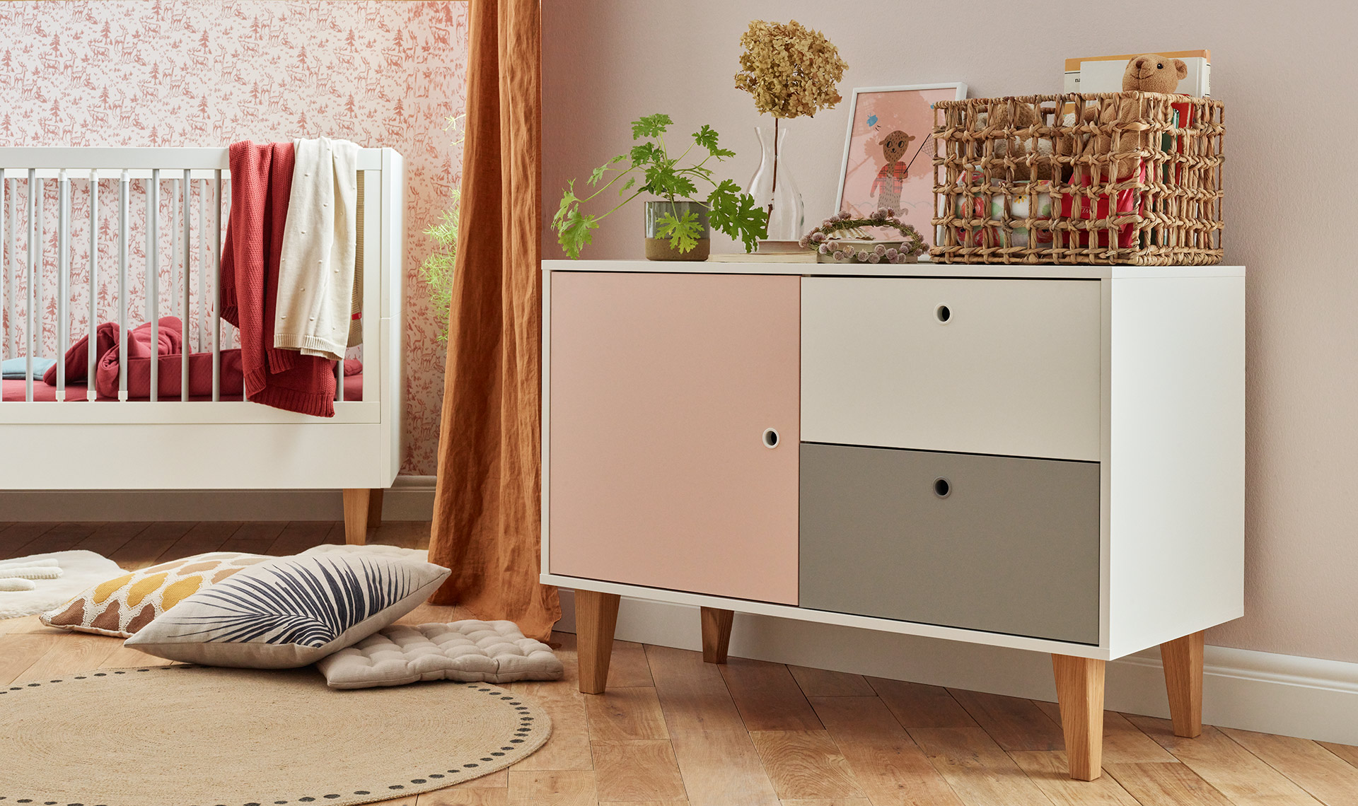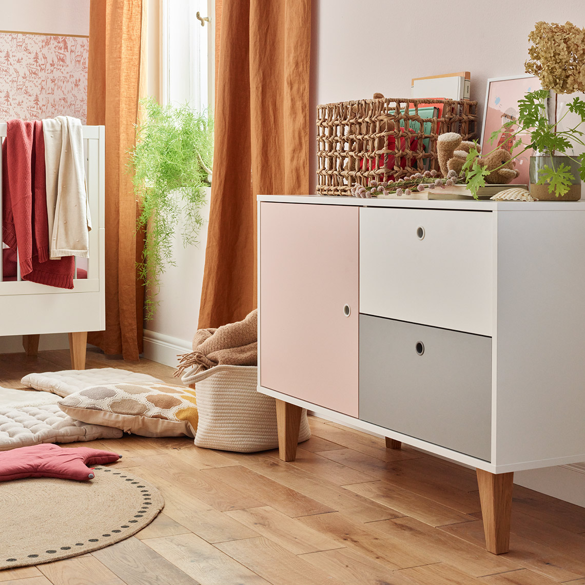 A low chest of drawers from the Concept collection makes it easy to organize any items belonging to a child, teenager or adult. The lockable cabinet and large drawers can conveniently store closet and documents, as well as games or blocks.