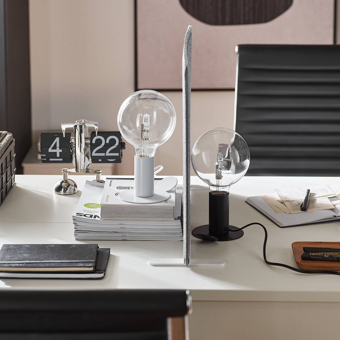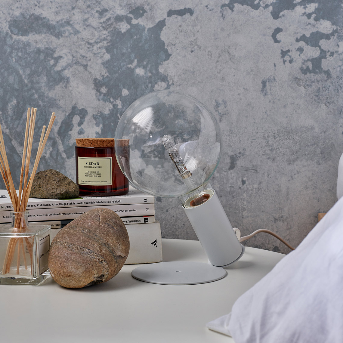 The MAGNET lamp consists of two parts - a base with a magnet and a separate bulb holder, which can be moved freely on the said base.