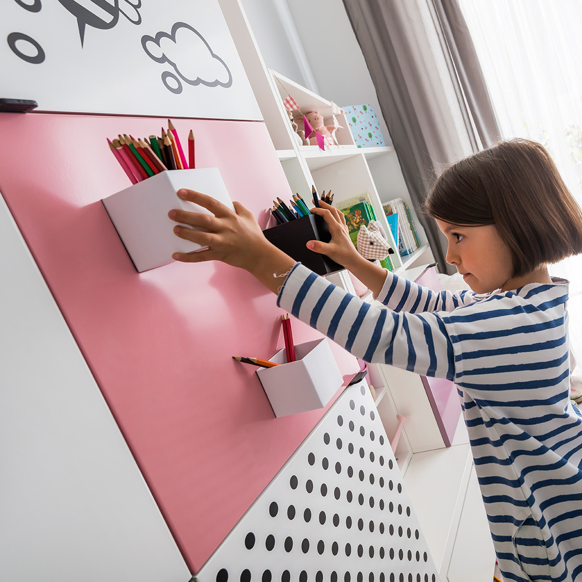 Use a metal front overlay to transform the look of your chosen piece of furniture from the Young Users series. In this way you will refresh the interior design without a large financial outlay and gain a clever base for magnets or notes.