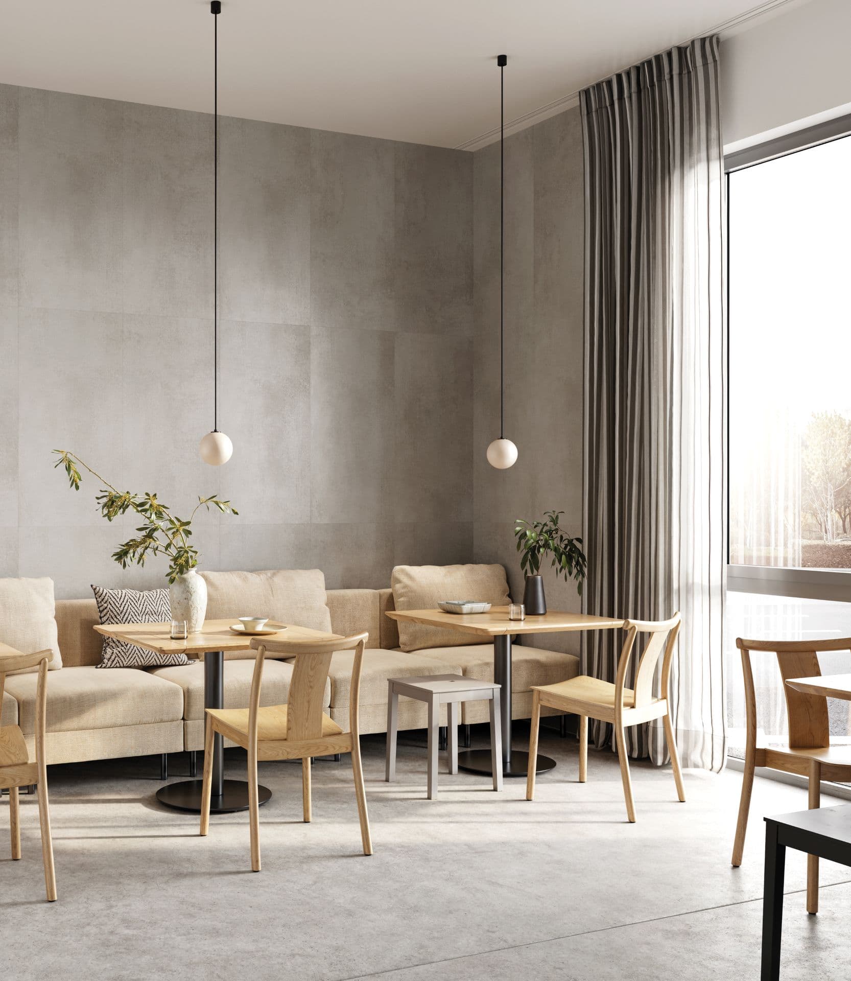 Idevo Smoky Concrete modern mineral wall panels are a quick way to refresh an interior and give it an industrial feel. Their surface replicates the pattern and texture of raw concrete, creating a durable and aesthetically pleasing finish. The panels are easy to install and, thanks to subtle joints, do not require grouting. They are also suitable for damp rooms.