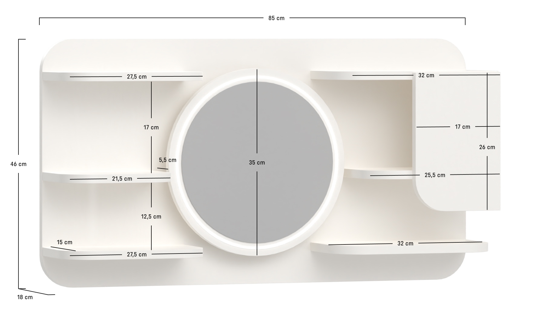 - The compact dimensions make the extension with mirror perfect even in smaller bedrooms, without taking up a lot of wall space.