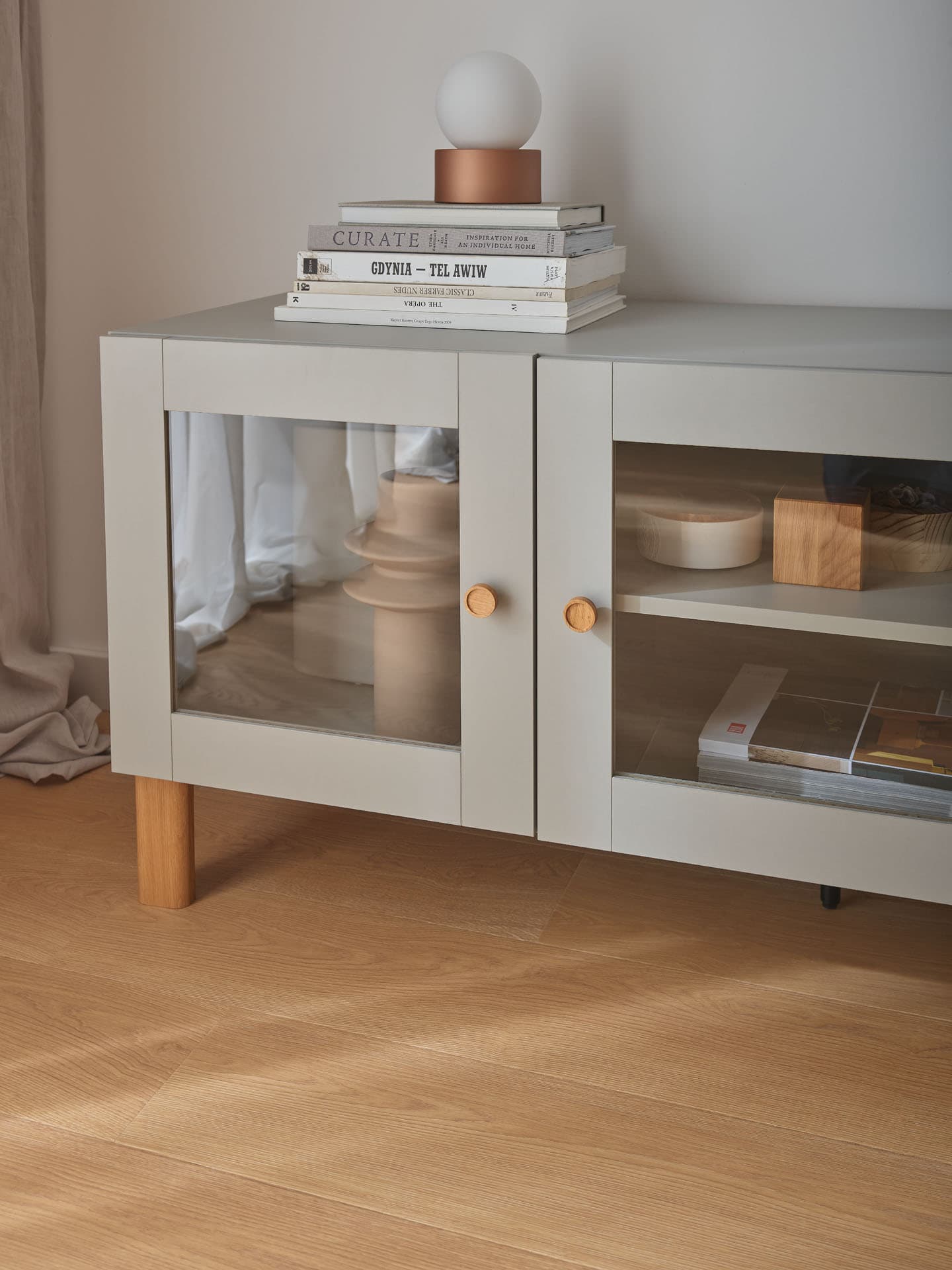 - You can set the cabinet on one of 11 types of legs or frames. If you want to place the furniture almost directly on the floor, just choose low glides.