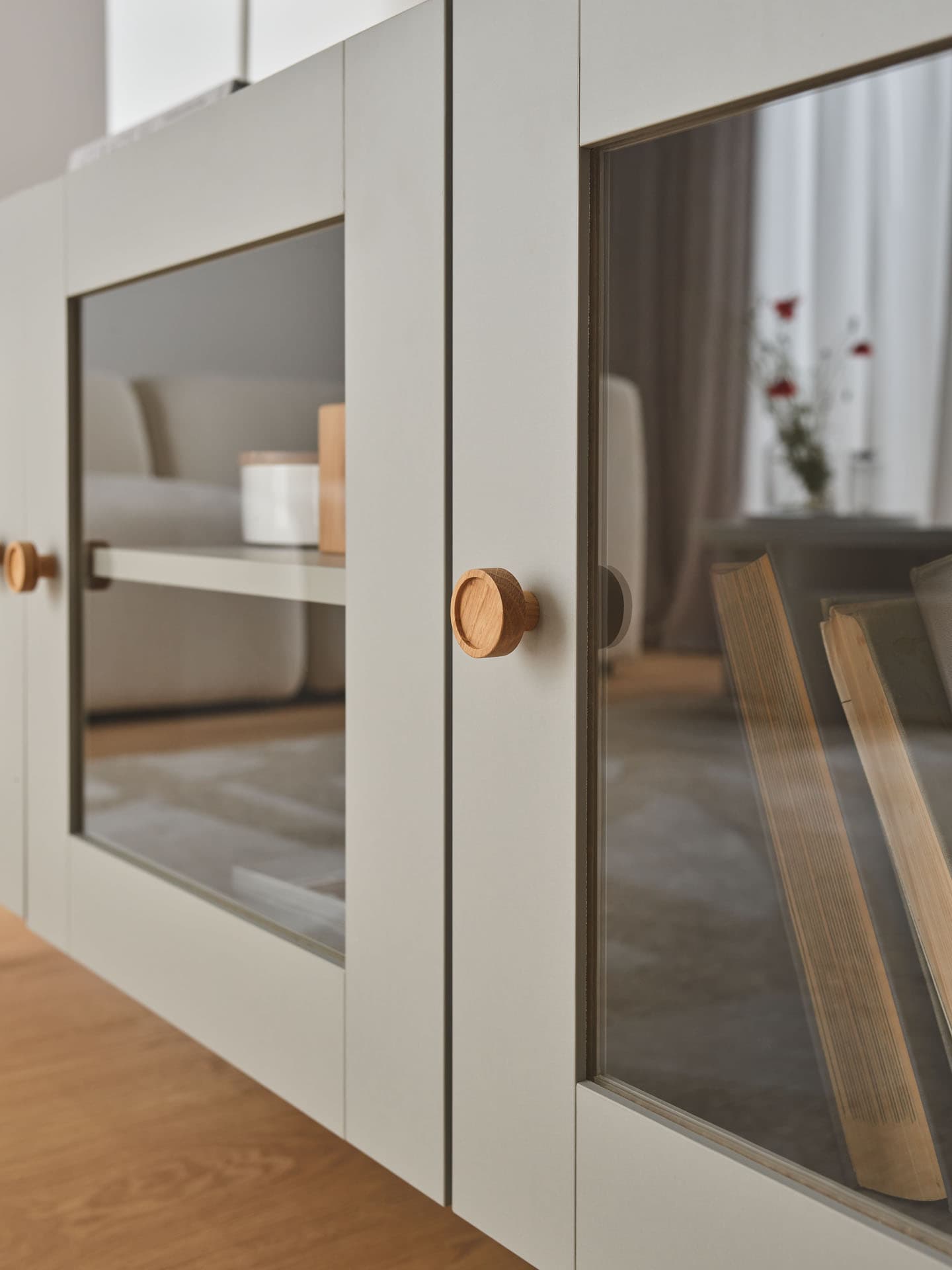 - Finally, choose how to open the doors and drawers. Choose from 11 solutions, including traditional knobs, leather handles or the Push to open touch system.