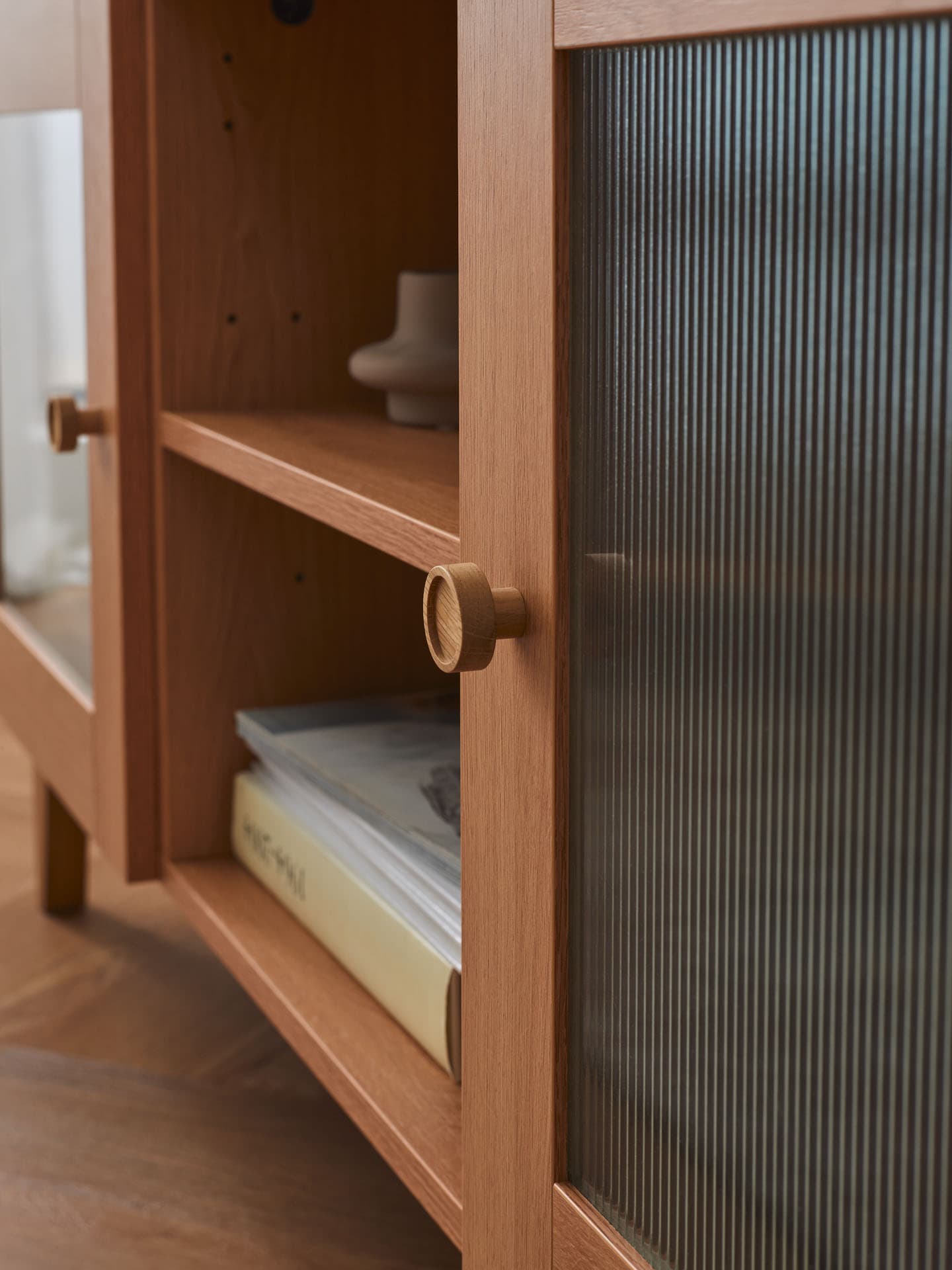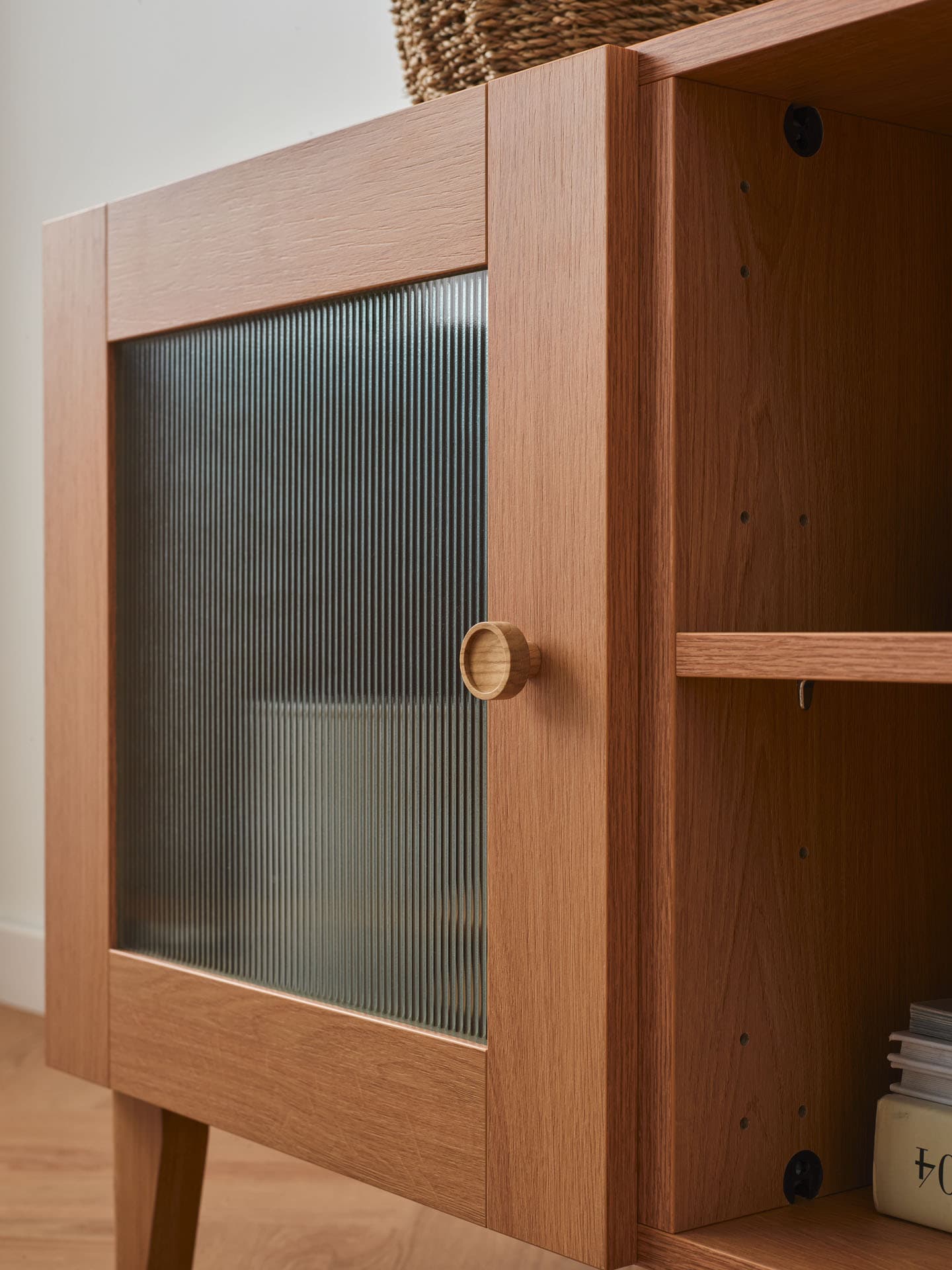 - Leave the shelves open and display your memorabilia, or choose the right doors: double or single.