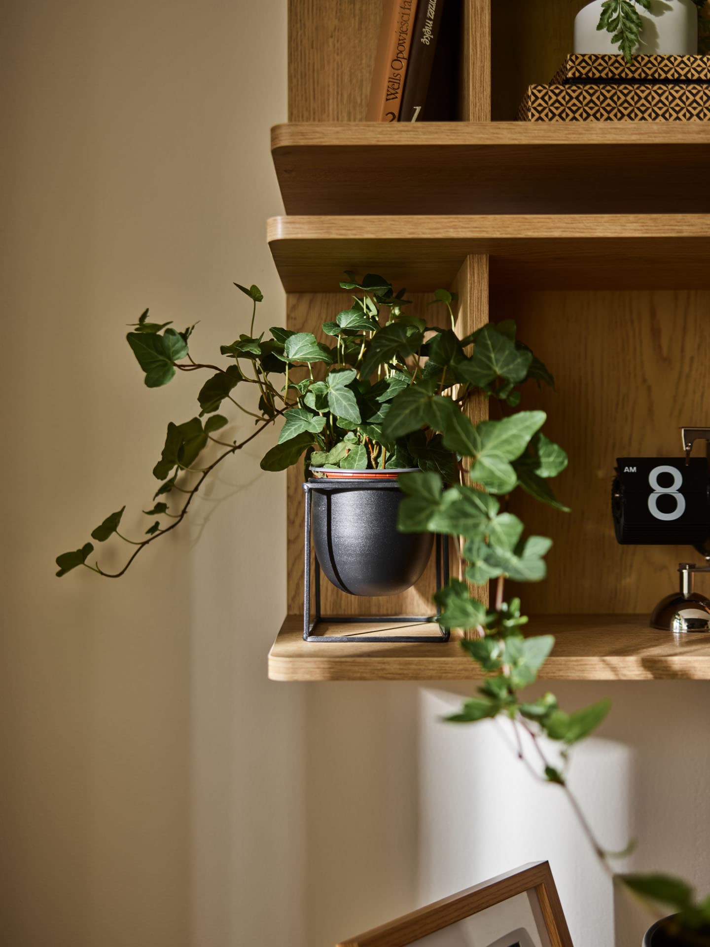 The narrow hanging shelf from the Well collection is a practical piece of furniture that allows you to organize small items and complement the wall arrangement. Simple zoning makes it easy to organize the contents and makes the shelf suitable for the living room, as well as for the bedroom or home office. It is a functional addition to the arrangement, which combines storage space with subtle display.