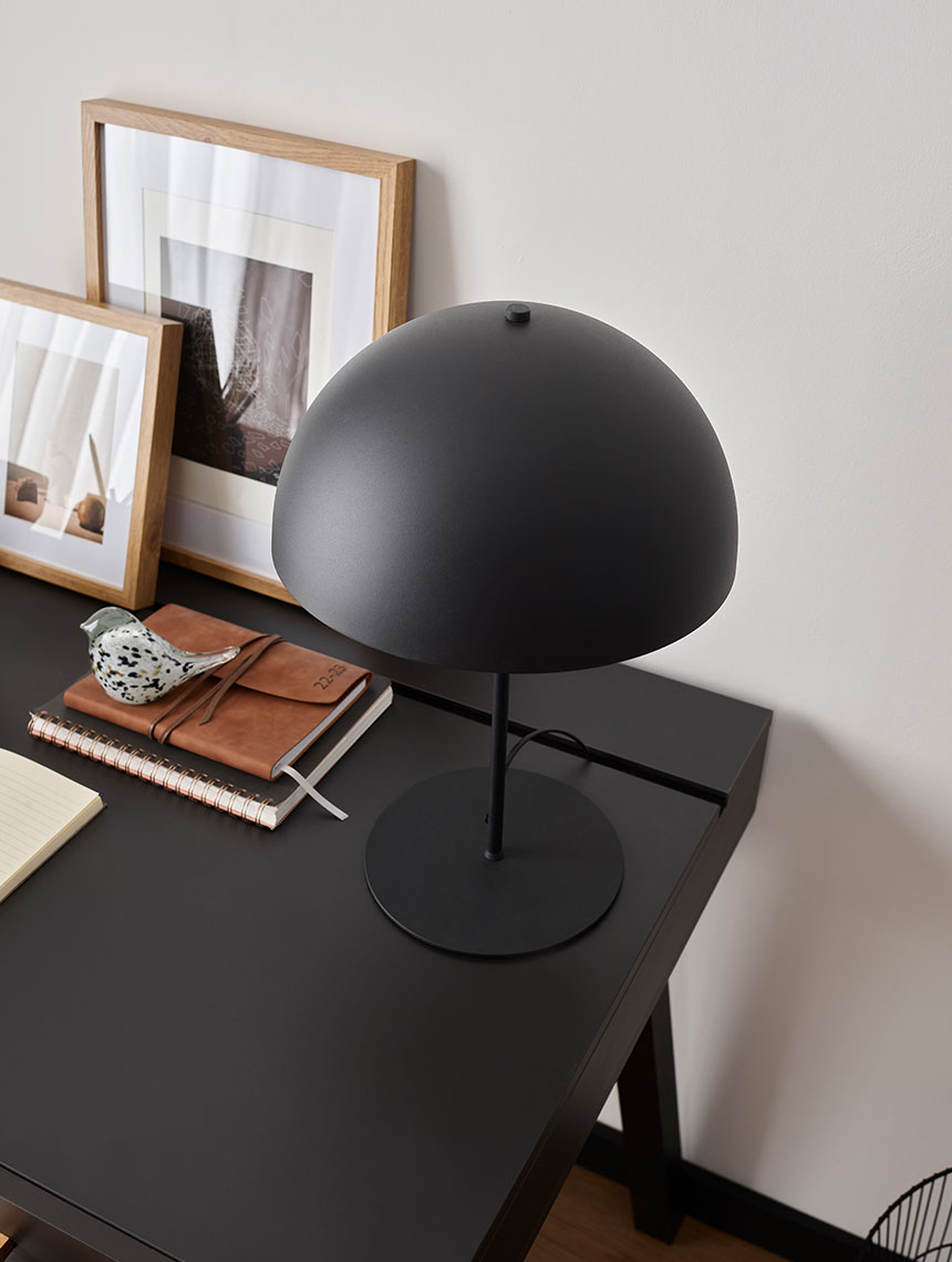 The rounded form of the lampshade lends a subtle accent to the room, working perfectly on a bedside table or dresser.