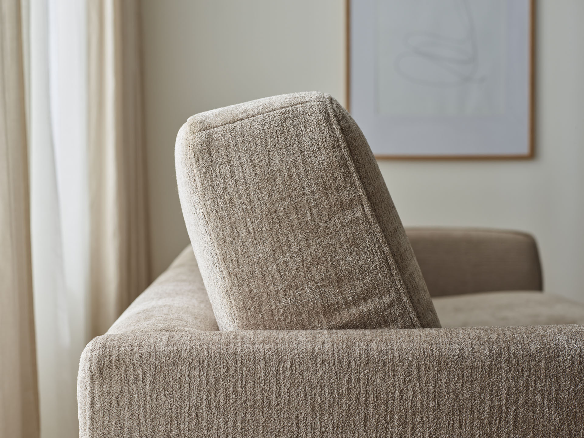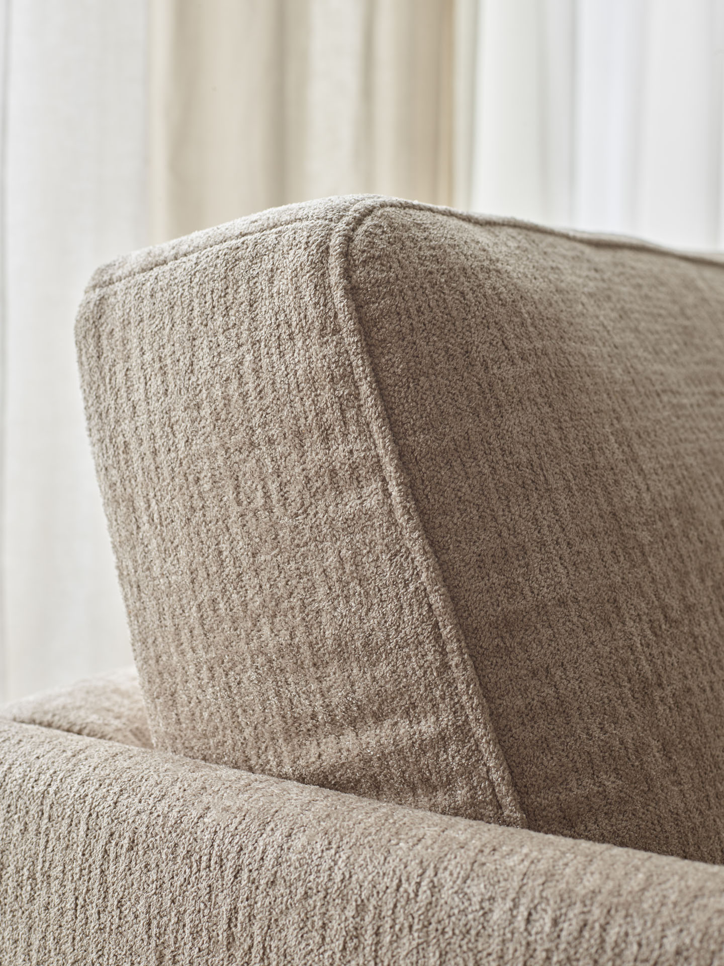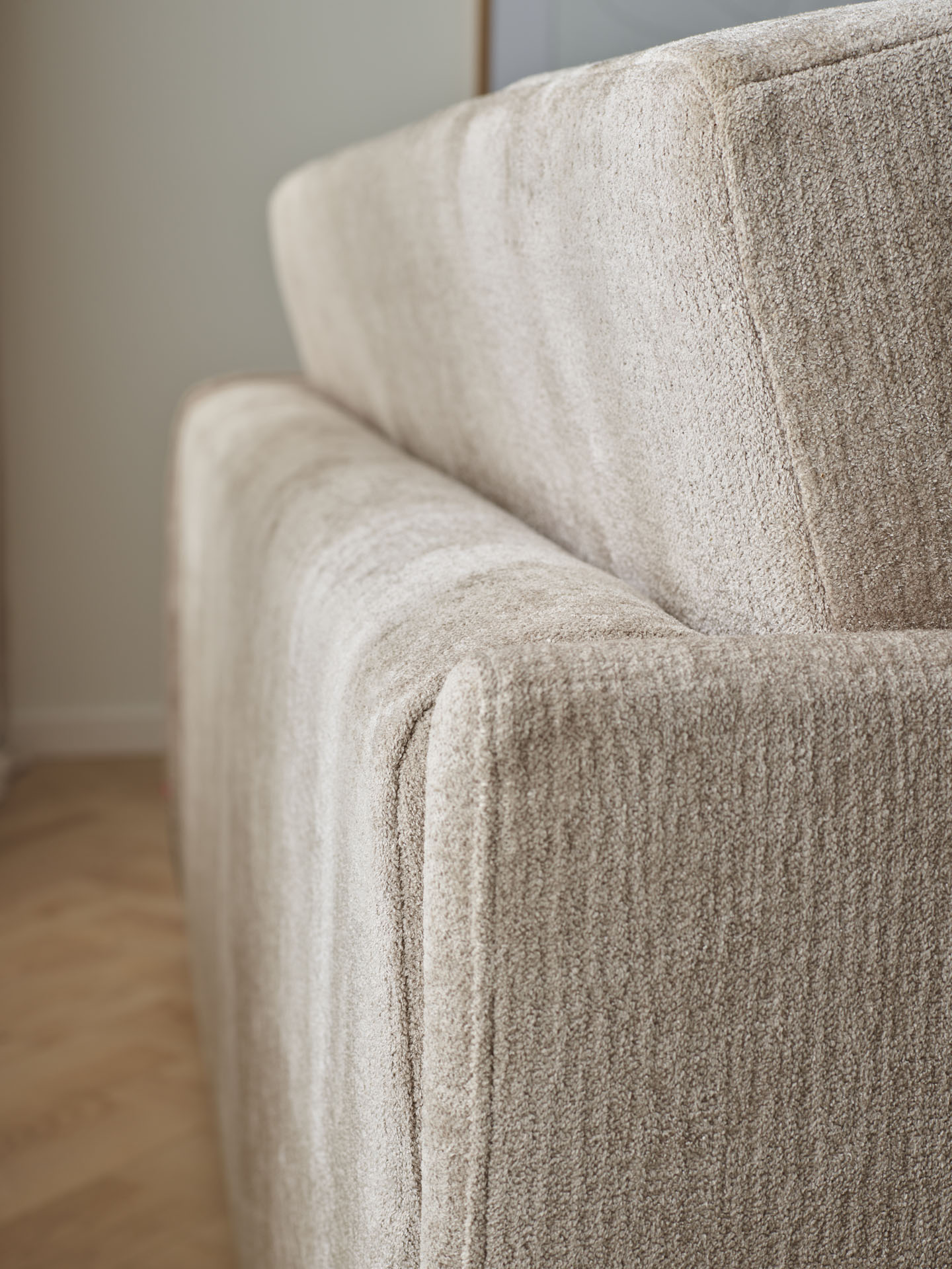 - The piece of furniture is available in two versions: with rounded armrests (177 cm wide) and with armrests with decorative stitching (184 cm wide).