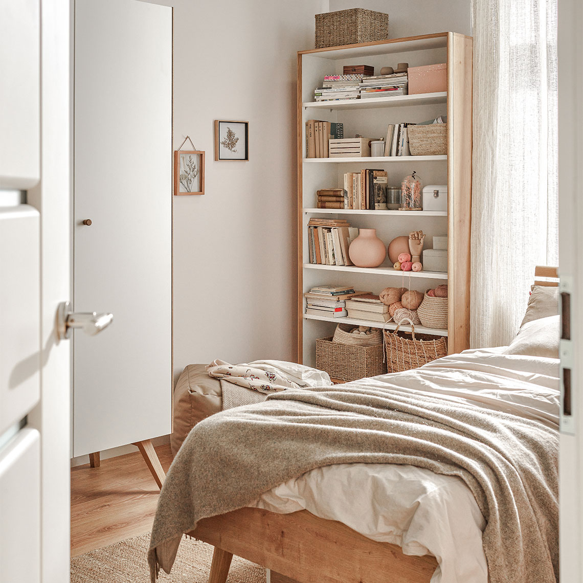 The minimalist bookcase from the Nature collection will easily accommodate a home library. On the capacious shelves you will put your favorite books, pots with plants or decorative boxes with trinkets. The structure of this piece of furniture is strong enough to easily withstand additional loads.