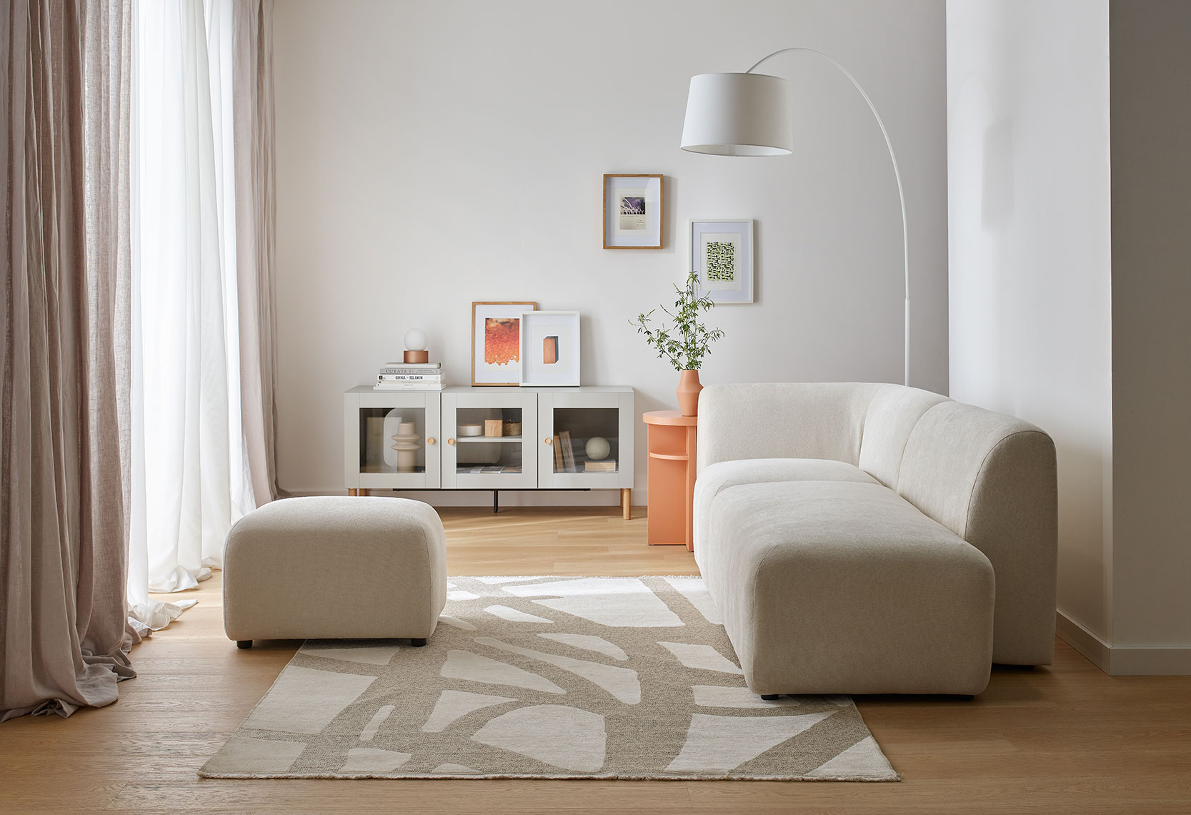 Rectangular pouffe from the modular Nui collection will serve as a soft footrest, an additional seat, and, if necessary, a practical place to put away small items. Thanks to the fact that it is compact, it will fit even in a small interior. Choosing your favorite fabric for it, you can easily match it with the arrangement.