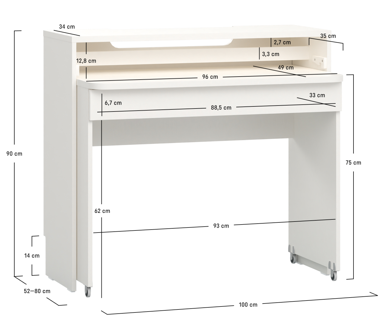 - Reli pull-out desk is in alabaster white color. This makes it fit into interiors decorated in different styles.
