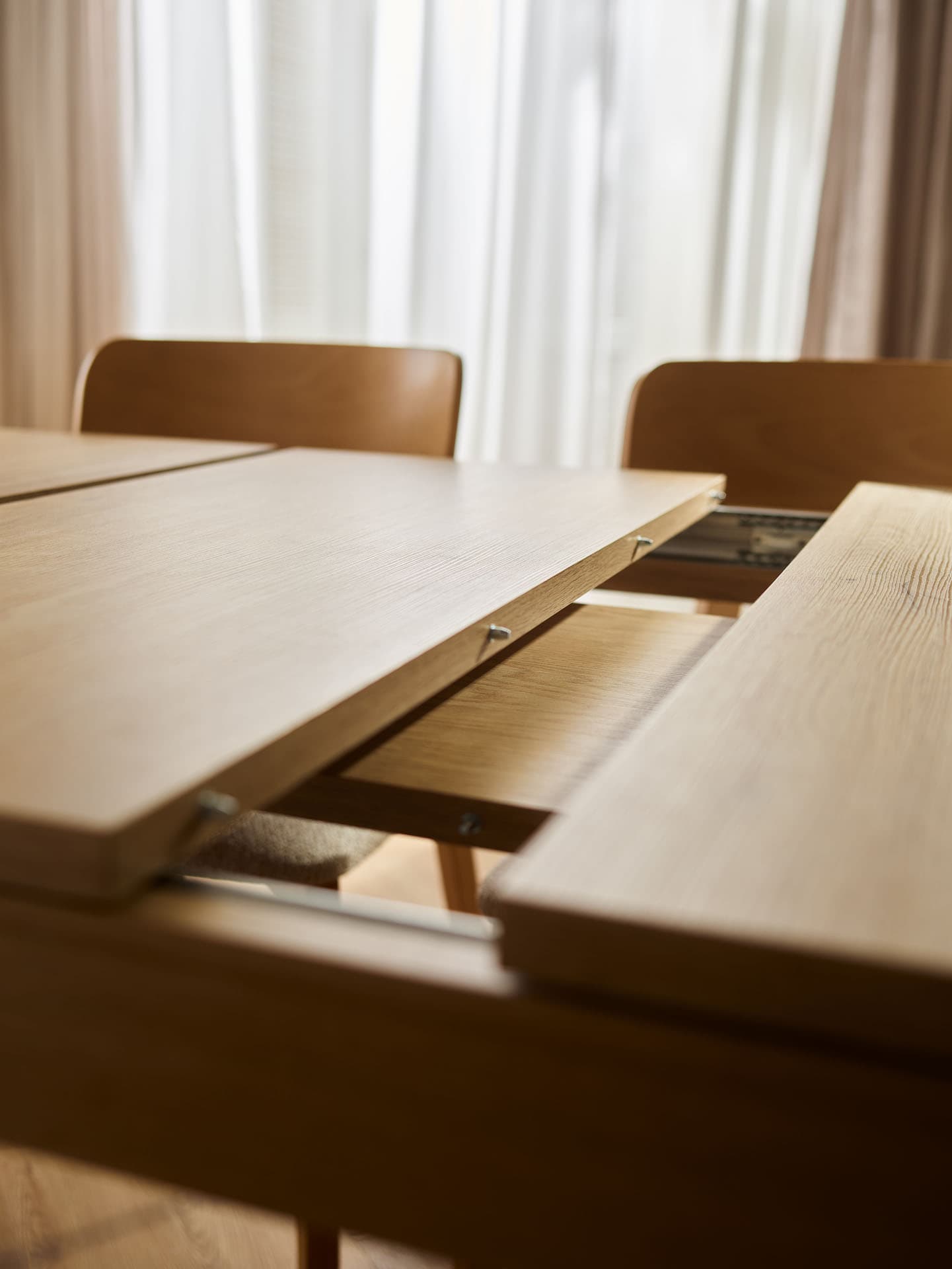- Thanks to its sturdy construction and stable oak frame, the table remains secure and perfectly balanced in any configuration, making it ideal for everyday dining as well as extended gatherings.