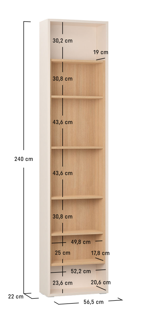 width: 56.6 cmheight: 240 cmDepth: 22 cm