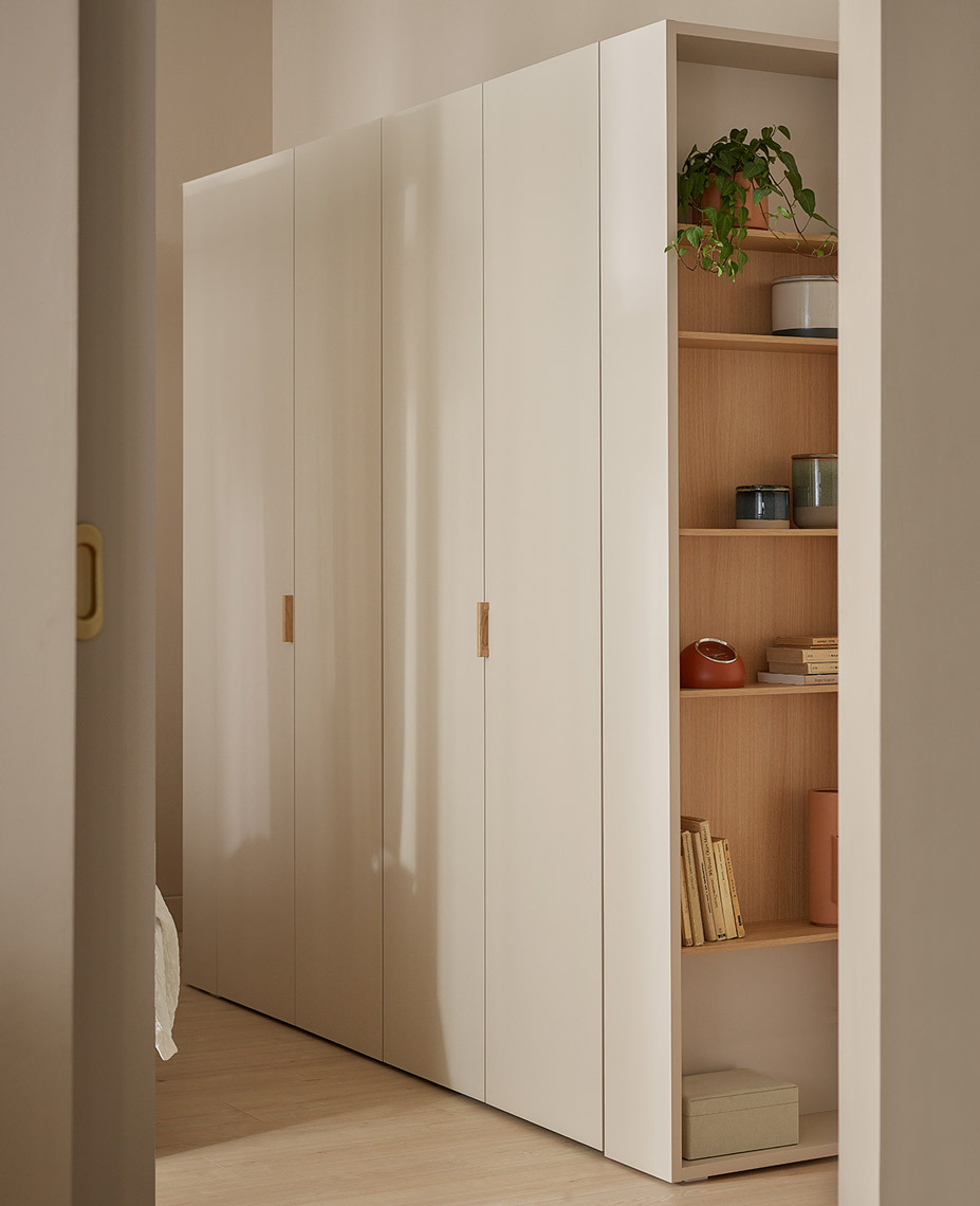 - It is available in two variants matched in height to the respective models of the 4-door closet. The smaller one with a height of 206 cm has 5 shelves, while the one with a height of 240 cm is equipped with 6 shelves.