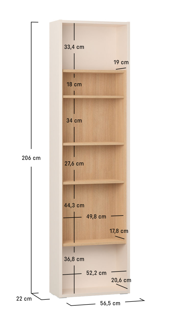 width: 56.6 cmheight: 205.8 cmDepth: 22 cm