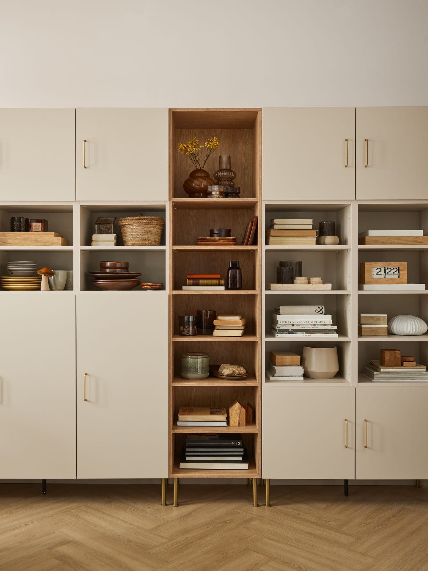 - You can equip the bookcase's door with a tactile Push to open system, or choose one of the 11 available handles.