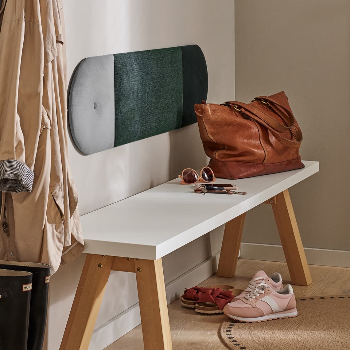 - The shades of the rounded panels are velvet matt gray and velvet shiny bottle green.