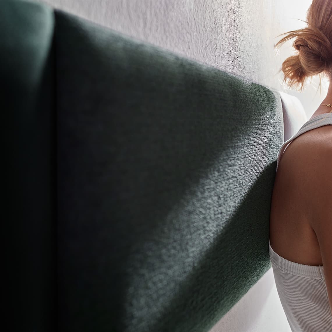 A small set in green-gray color, designed for wall decoration - it gives a cozy atmosphere, soundproofs the room and provides a pleasant to the touch support. The finished set consists of 3 Soform upholstered panels with harmoniously matched finishes.