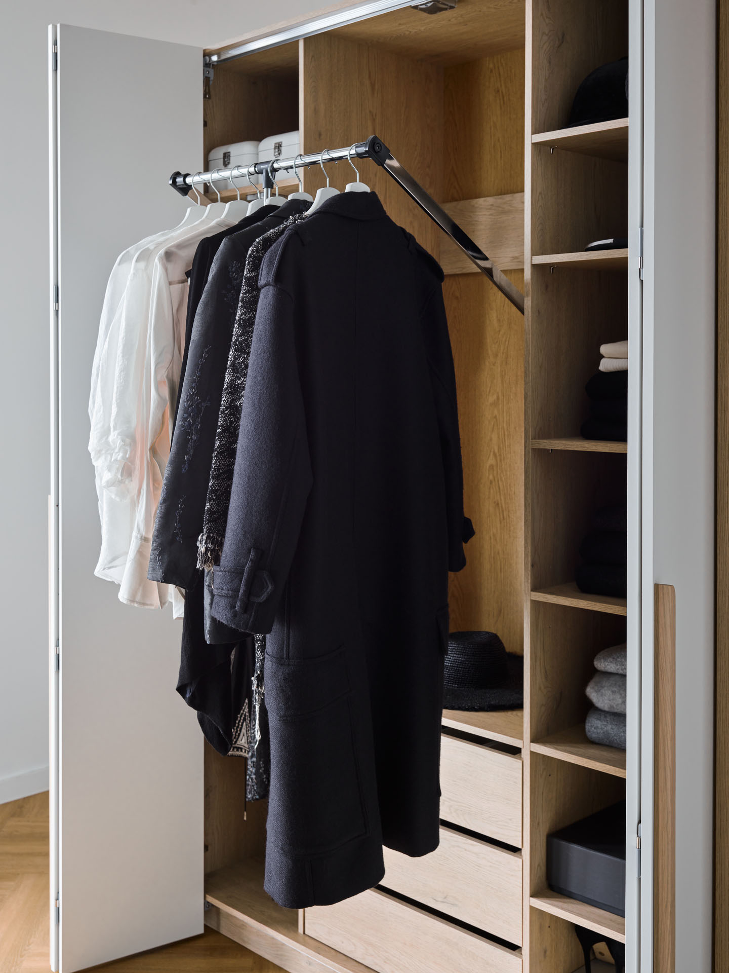 - The Stor collection also includes wardrobes of other widths (125 cm, 160 cm, 175 cm, 200 cm), which can be combined to increase storage space.