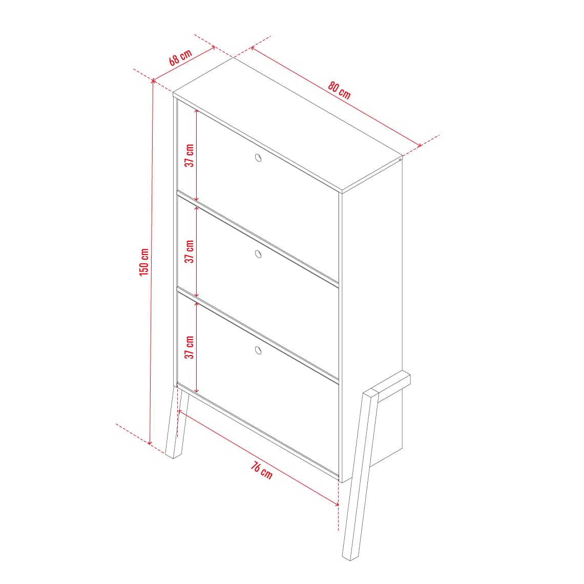 Shoe cabinet with 3 shelves, ideal for a hallway or corridor. The furniture makes it easy to store shoes and keep them in order, without taking up a lot of space.