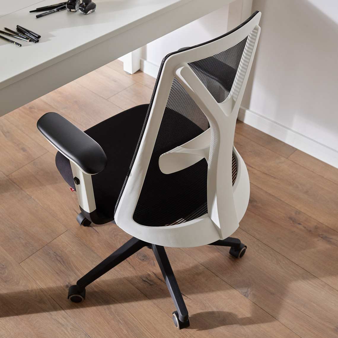 The combination of sturdy plastics, breathable mesh and soft upholstery fabric made it possible to create an armchair distinguished by high durability and comfort. Polyurethane, durable casters are soft and safe also for wooden floor or laminated panels.