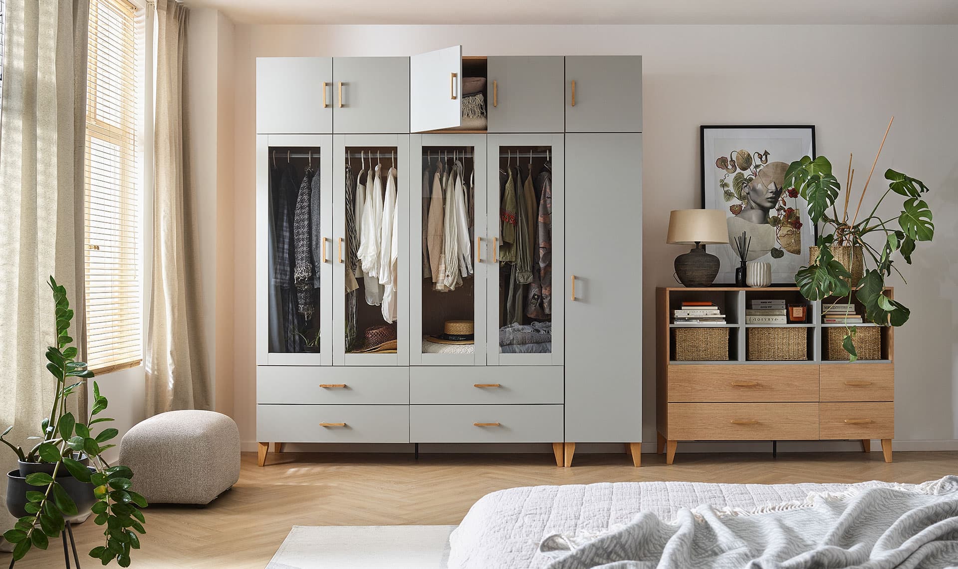 Not sure how to accommodate all your clothes and accessories? The extension matching the Creative 4-door closet will provide additional storage space for your entire closet. The harmonious duo will work well both in the bedroom and the hallway. A variety of configuration options for the Creative system will allow you to closely match the appearance of the extension to your own expectations.