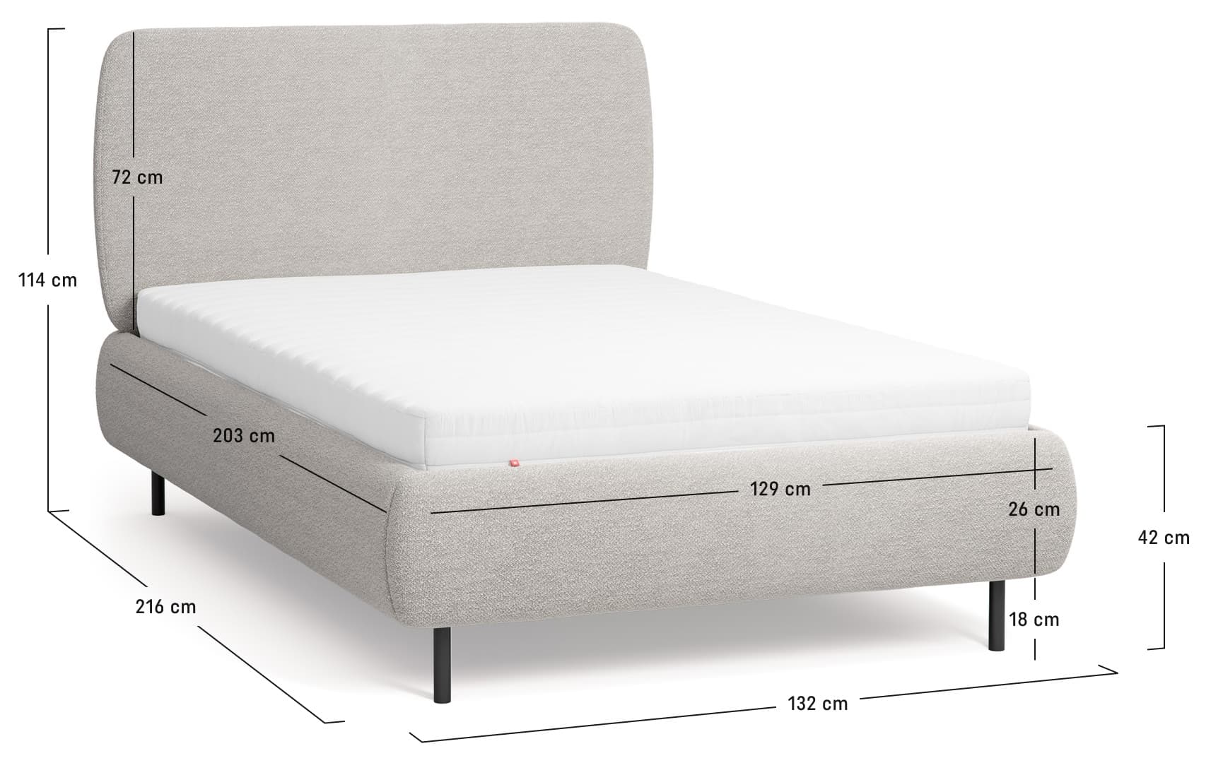 - The bed, with its upholstered frame and smooth headrest, provides comfort during sleep and afternoon rest. The gently rounded box and the rounded finish of the headrest increase safety during use.