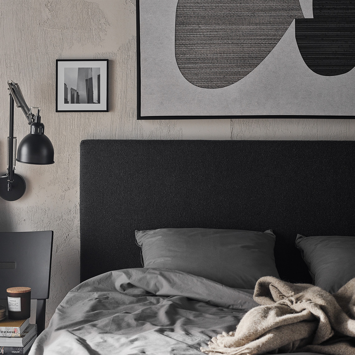 - The body and headrest of the bed are upholstered, which visually warms and builds a cozy mood in the bedroom. You can customize the product to your liking by choosing the type of upholstery fabric and its color. It can be natural like linen or wool, easy to clean or especially resistant to animal claws - a sample book is available in the VOX showroom.