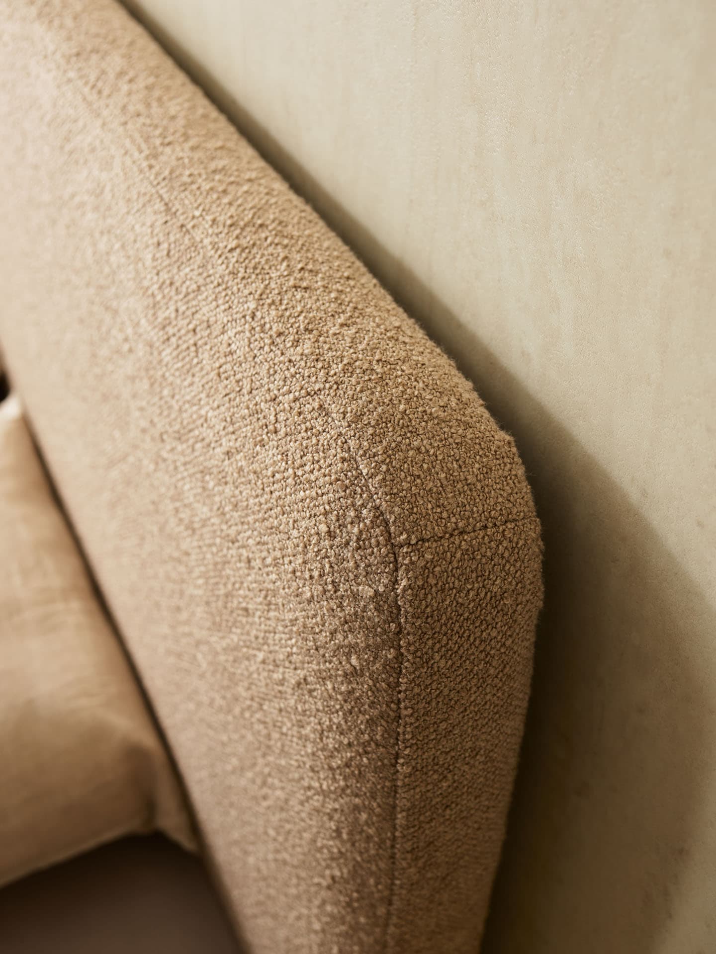 The elegant Calme upholstered bed with a timeless design provides a comfortable sleeping space. The rounded frame, curved headrest and high legs give the piece of furniture lightness. With a wide range of upholstery to choose from, the bed will find its way into a variety of interior styles.