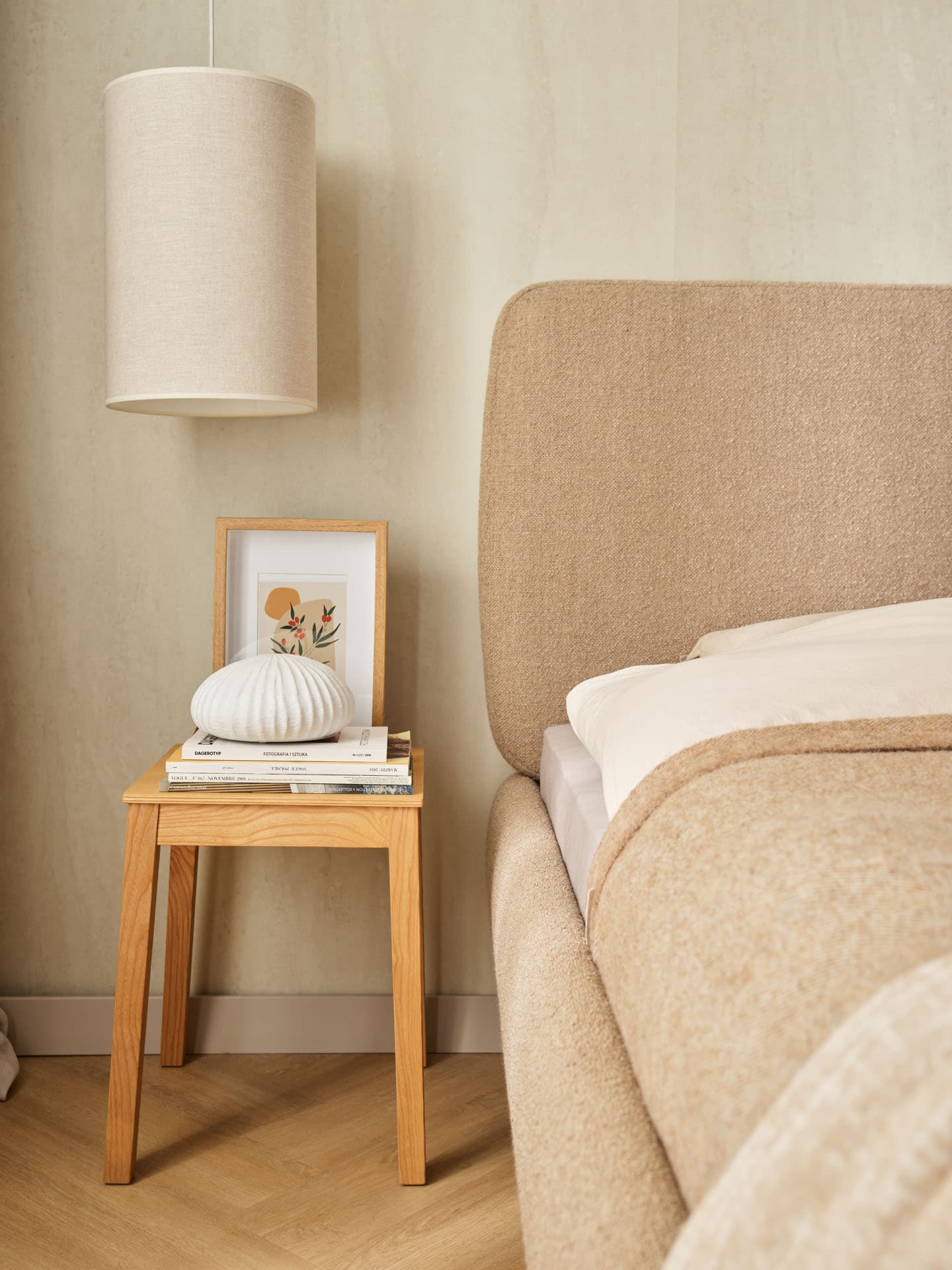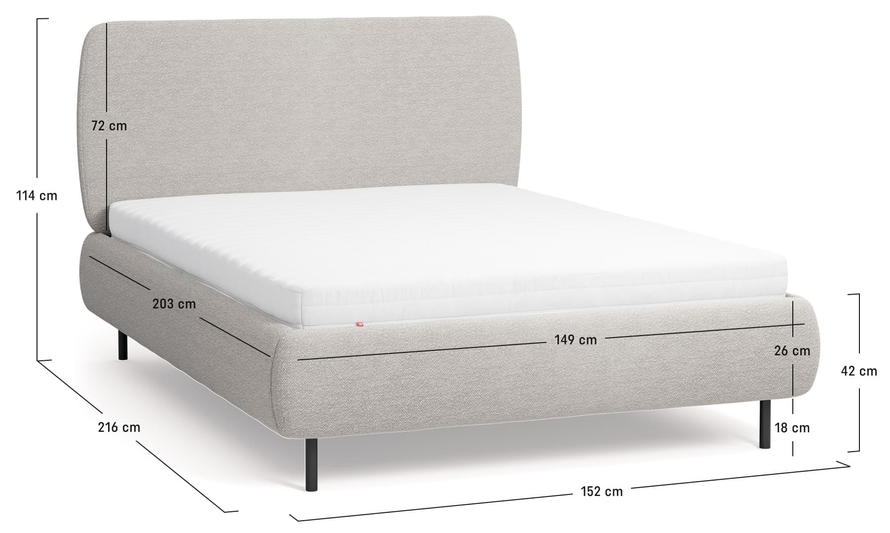- The Calme bed is equipped with a smooth headrest, which provides soft support for the back. The wide upholstered frame provides enough space for two people to rest.