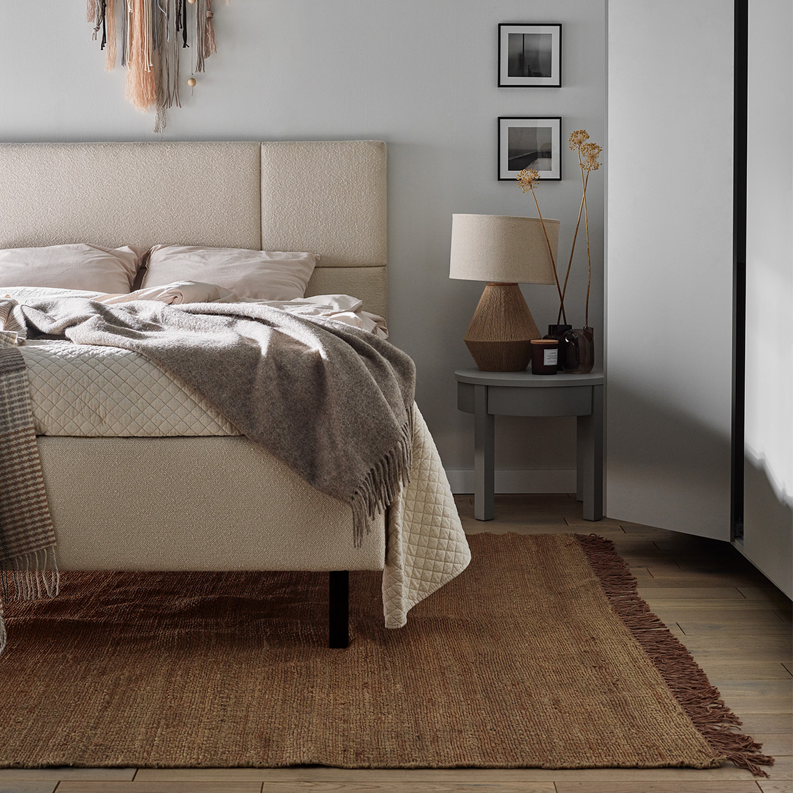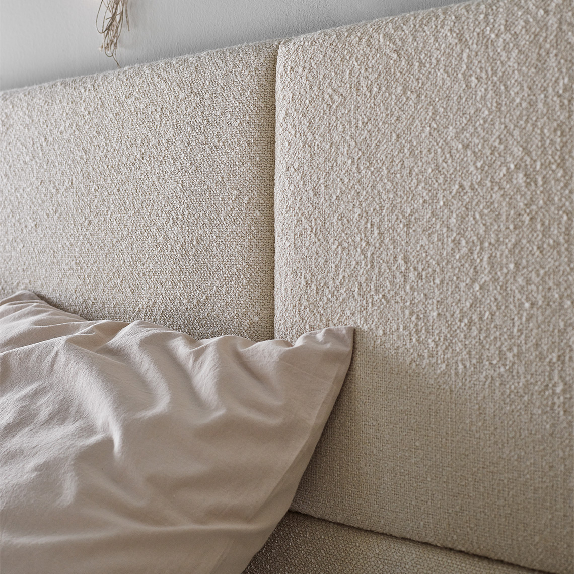 - The furniture is covered with upholstery fabric - both the sides of the body and the headrest are upholstered with it. Thanks to this, the bed looks elegant and gives the bedroom a cozy character. The product can be personalized by choosing the type and color of upholstery.