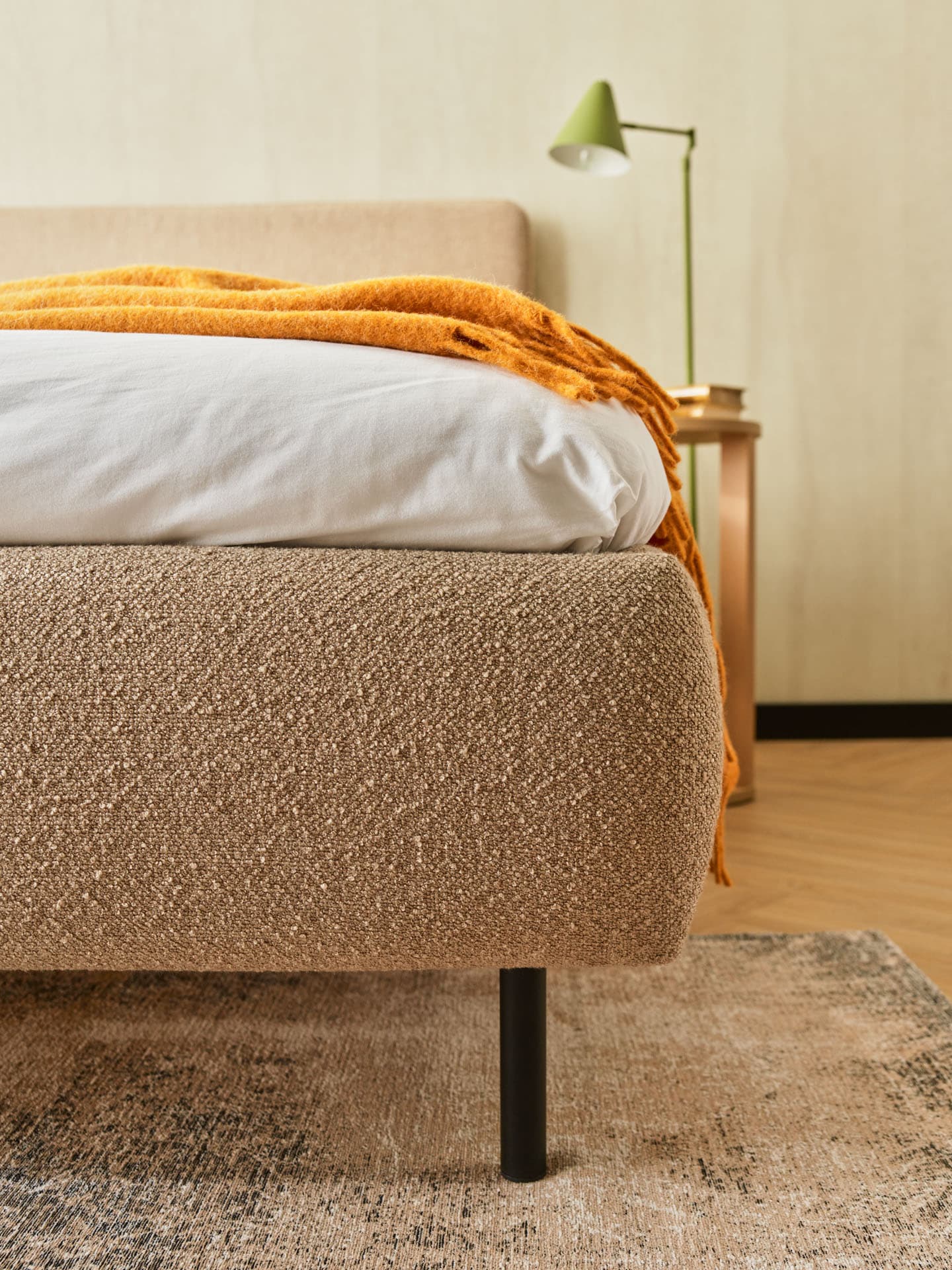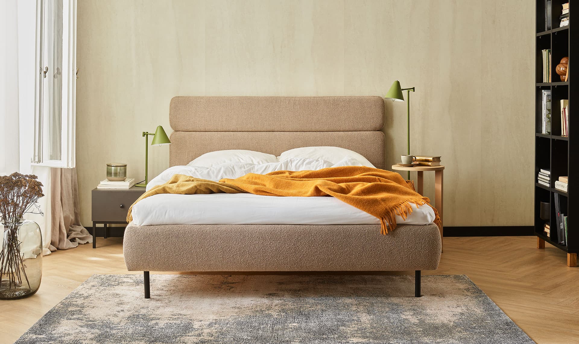 The stylish Somnia upholstered bed is an option for couples who value elegance and everyday comfort. The split headrest provides comfortable support when reading together or relaxing in the evening, and the high legs add lightness. A wide selection of fabrics allows you to match the bed to the character of the interior. The model can be matched with a mattress of preferred firmness.
