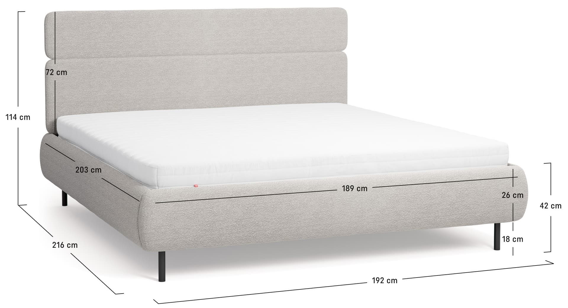 - Somnia double bed is available in three widths to choose from: 140 cm, 160 cm and 180 cm, allowing you to match it to the size of your bedroom.