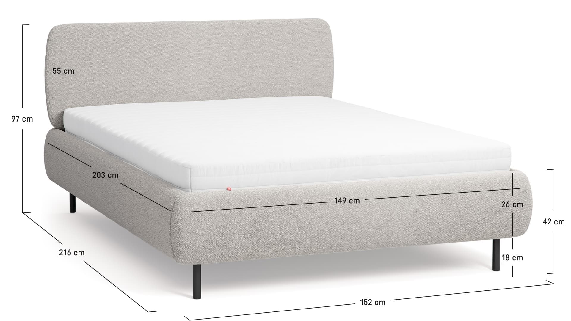 • The Calme double bed is available in three widths to choose from: 140 cm, 160 cm and 180 cm. You will need to buy a preferred mattress for it, with the dimensions corresponding to the frame.