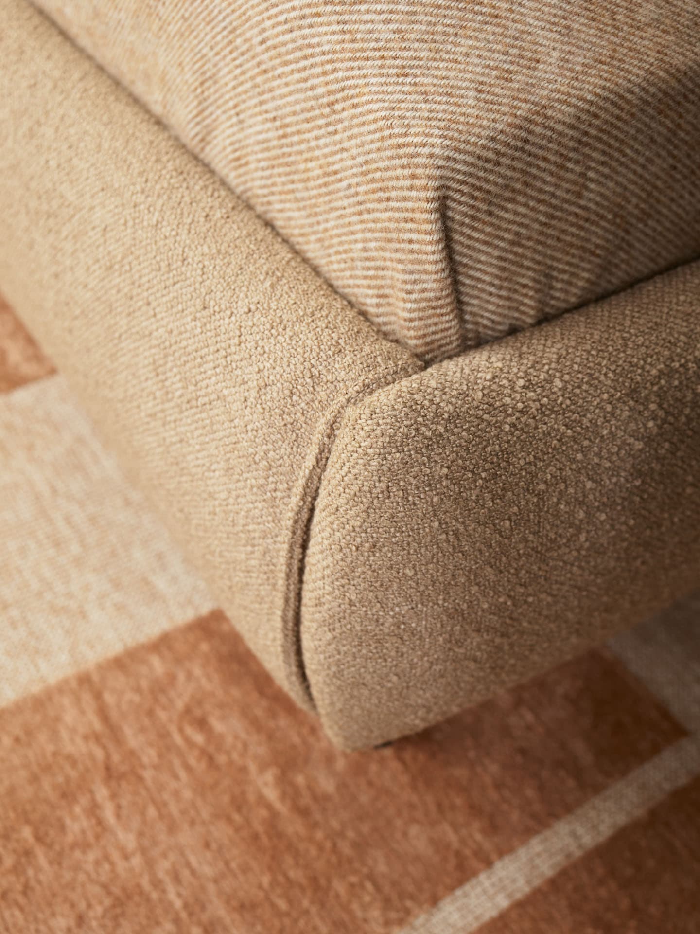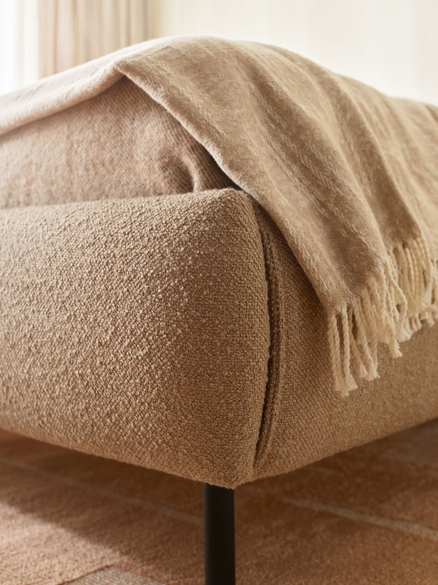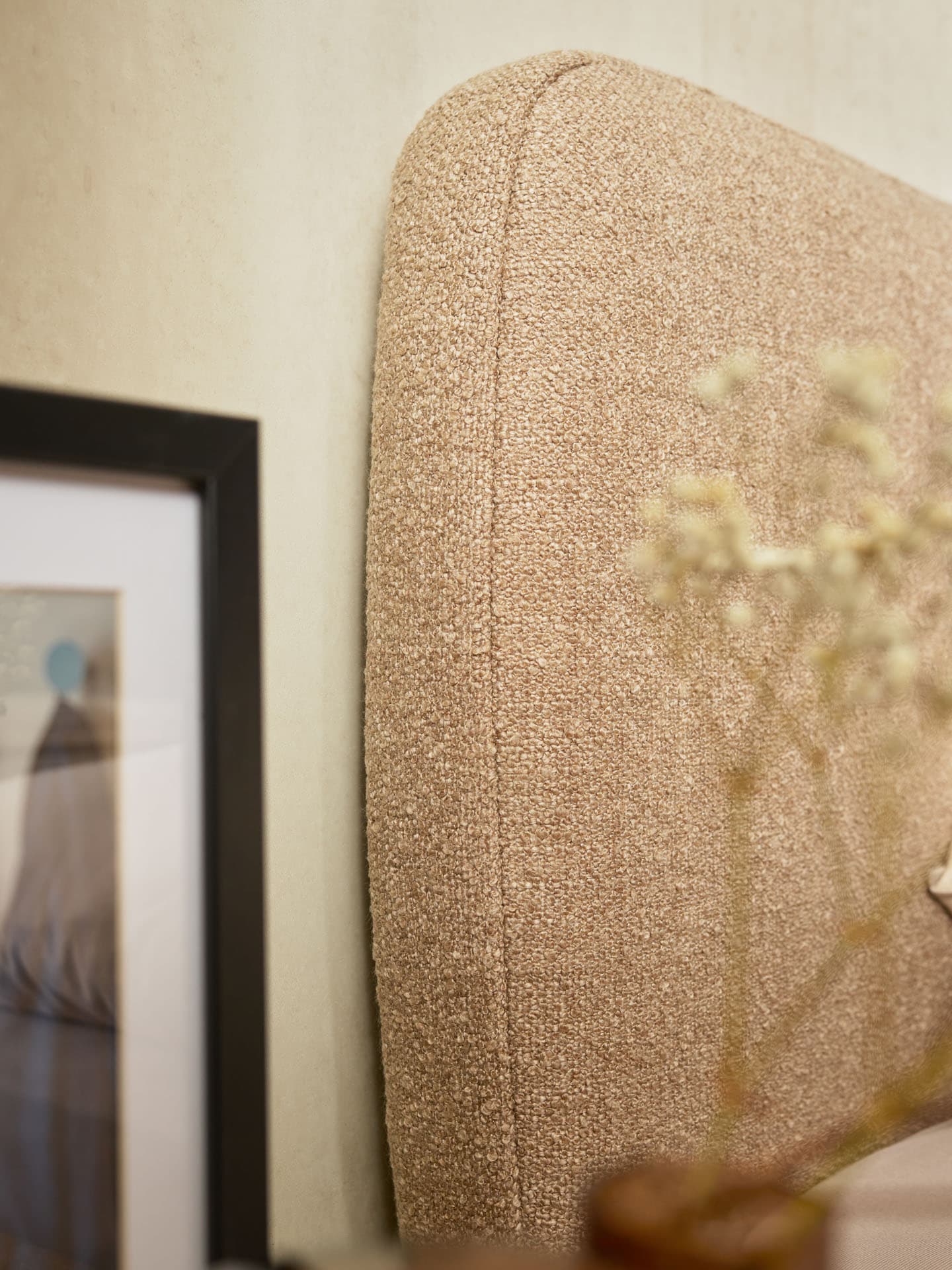 The Calme upholstered low bed is an ideal choice for a bedroom for two. The softly rounded headrest and wide frame create a comfortable place to rest, read or relax in the evening. The simple, timeless form makes the furniture blend well with different interior styles, and the low design will also find its way well into rooms with slants or limited space.