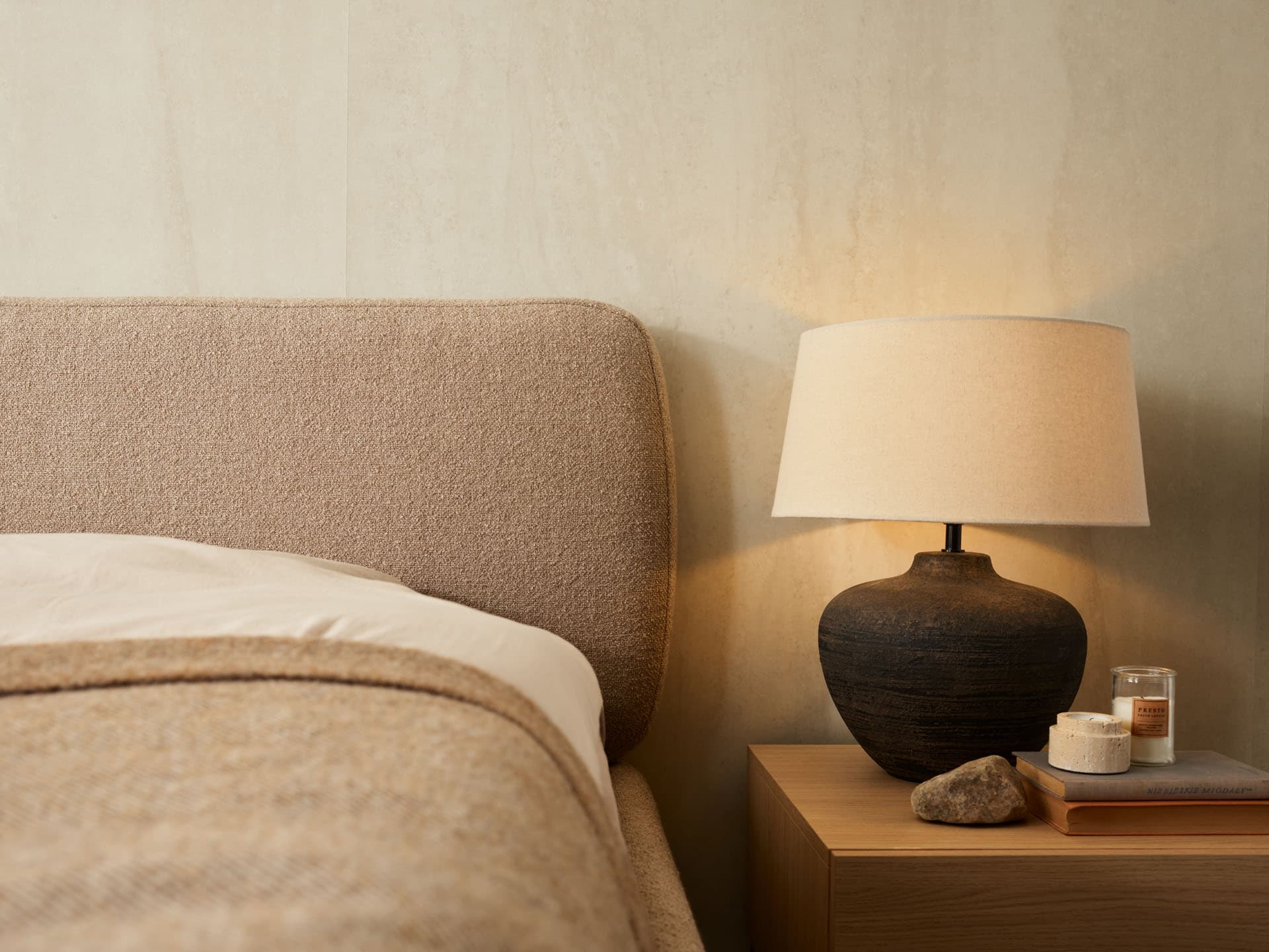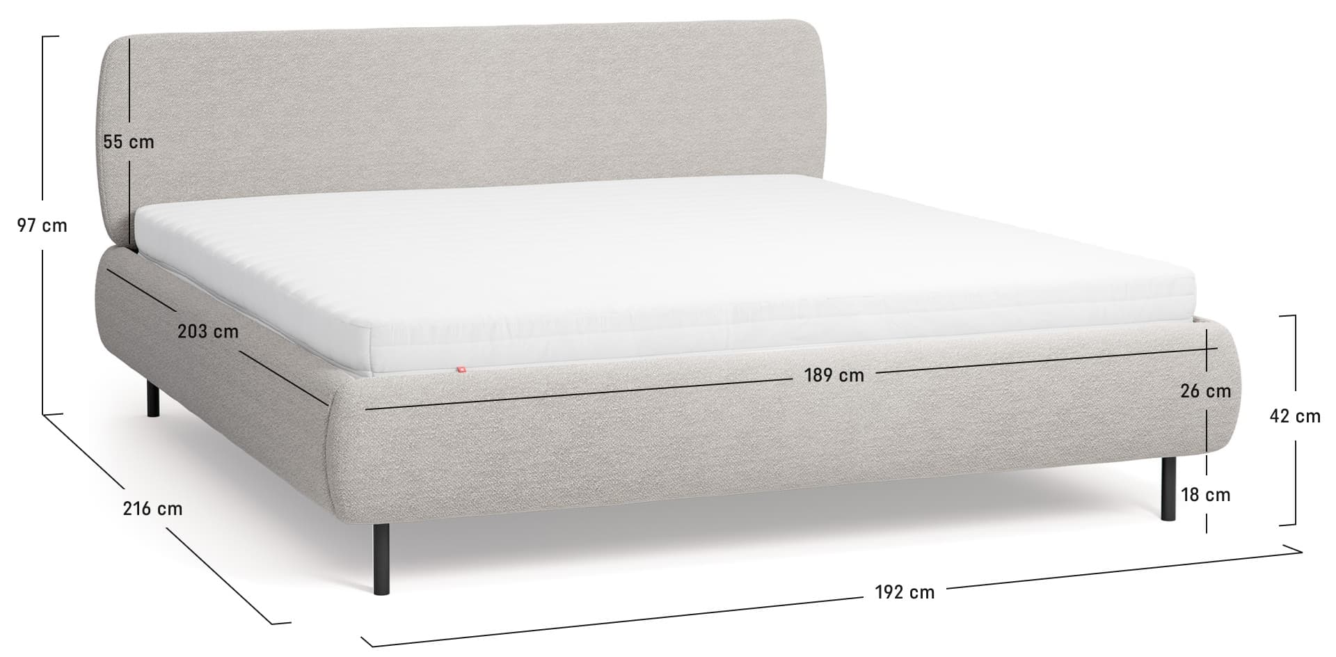 The Calme upholstered low bed is an ideal choice for a bedroom for two. The softly rounded headrest and wide frame create a comfortable place to rest, read or relax in the evening. The simple, timeless form makes the furniture blend well with different interior styles, and the low design will also find its way well into rooms with slants or limited space.